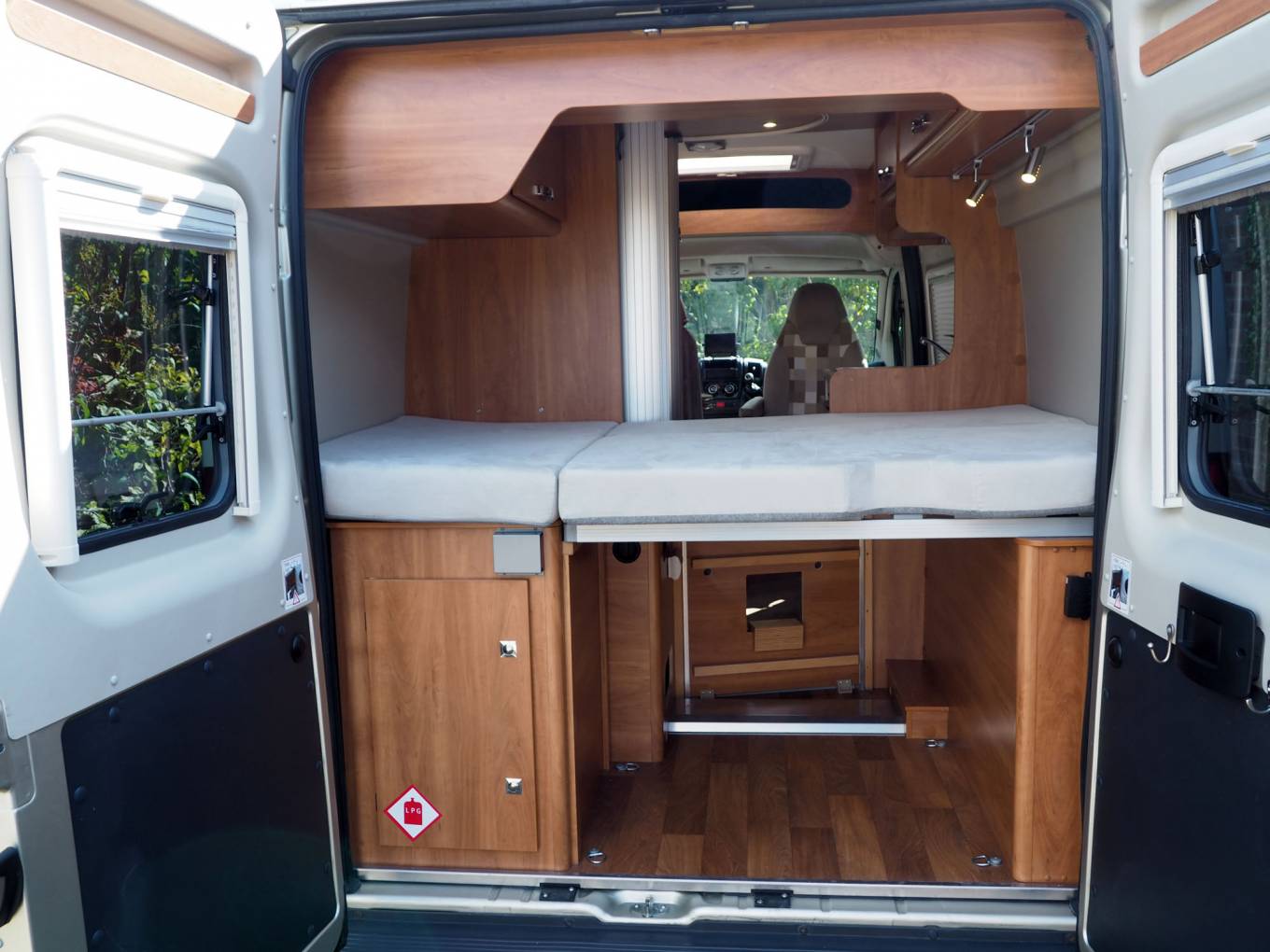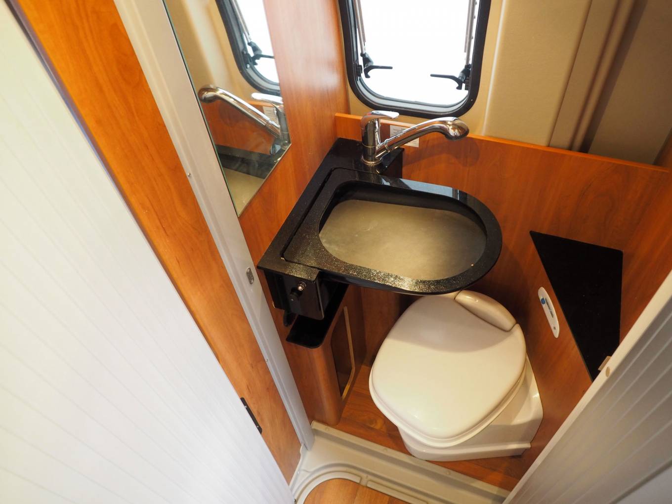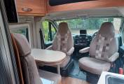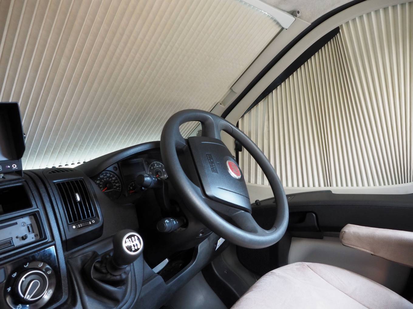 Finished in white gold metallic paint outside and with quality furniture inside, the Globecar Roadscout R is as attractive to look at as it is to be in. Up front the 2.3 Multijet offers plenty of power and the driving experience is enhanced by cruise control, cab air conditioning and rear view camera. The cab is quickly screened off at night using the integrated blinds.