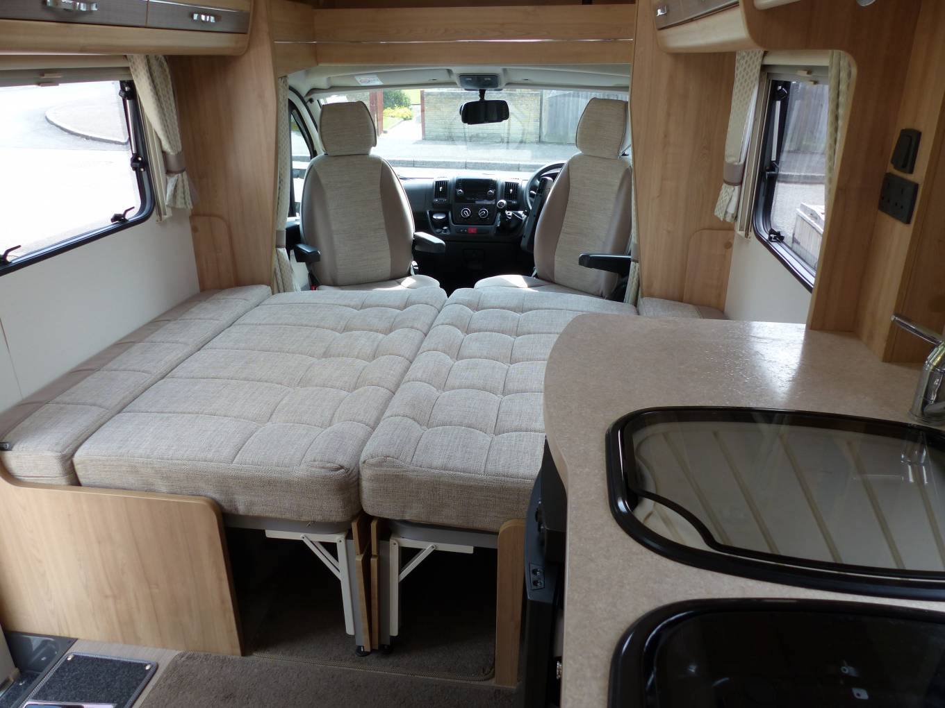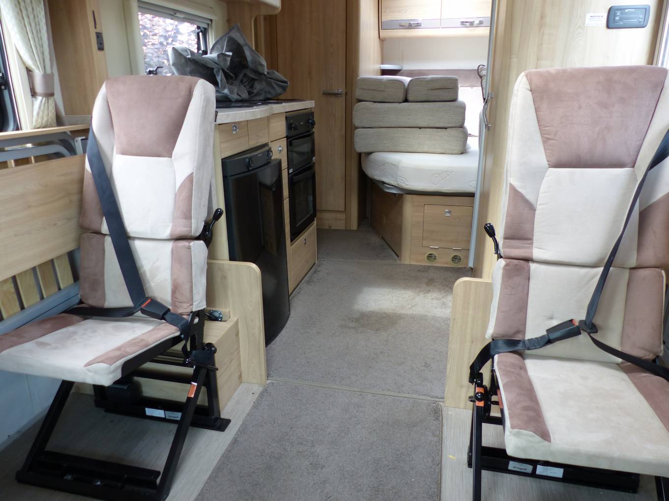We are delighted to offer this stunning 2016 Elddis Sussex Goodwood Pemier Addition 155 having only covered just over 8732 miles. This lovely example has ample internal open space with a light interior and plenty of natural light. The two captains chairs swivel to give upto 6 seats in the lounge area very comfortably. Under the two bench lounge seats you will find two fixed retractable traveling seats, this making the motorhome a 4 belted option. The front parallel sofas make a large double bed option. LED lighting offered throughout. . Plenty overhead storage and ample under bed storage with external locker access.