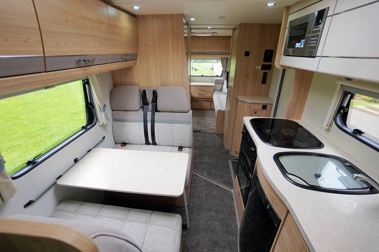 For sale we have a 2016 Elddis Autoquest 180 Signature Edition, 6-berth, 6-seatbelts, over-cab double bed with end-lounge. One owner from new, with full service history and very low mileage.