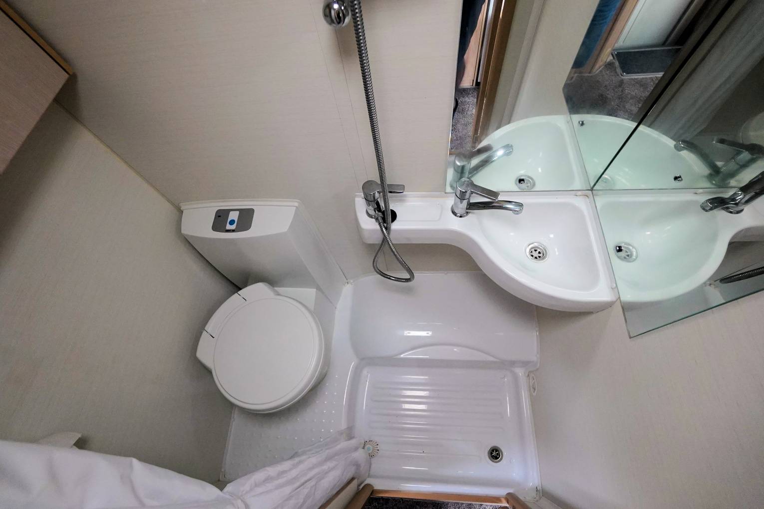 • Washroom with Thetford cassette toilet, vanity unit and shower.