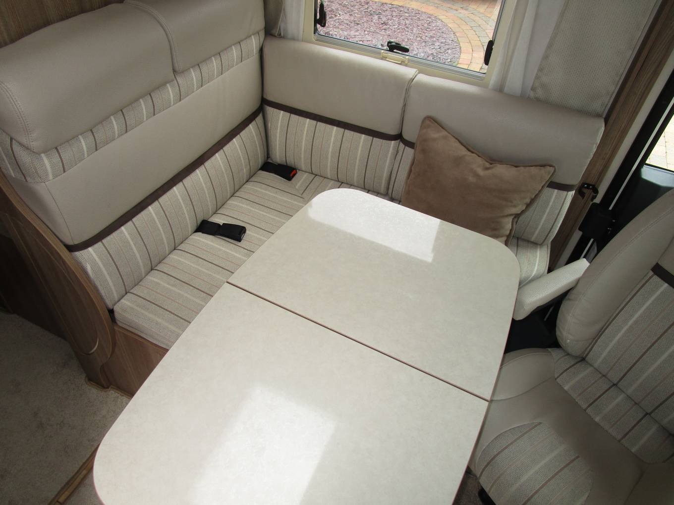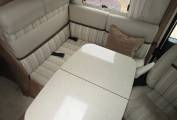 As with the A-Class motorhome you will find the large pull-down double bed situated above the Cab. Also to the front of the vehicle you will find the L-Shaped dining area with two 3-point seatbelts. Along with the two Captain Seats and the fold-in-half table provides a great area for either dining or relaxing.