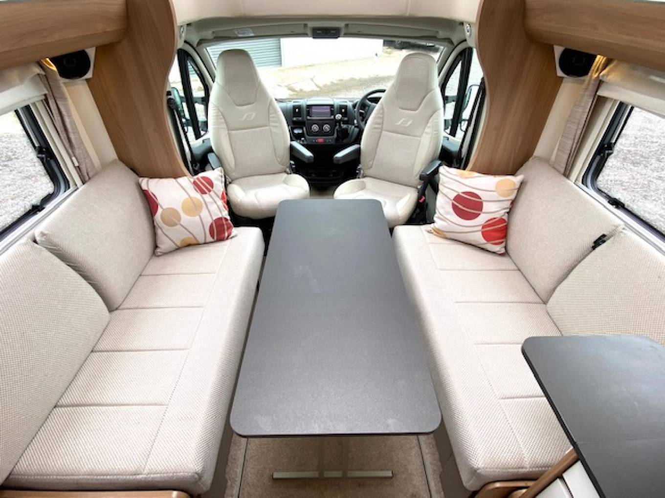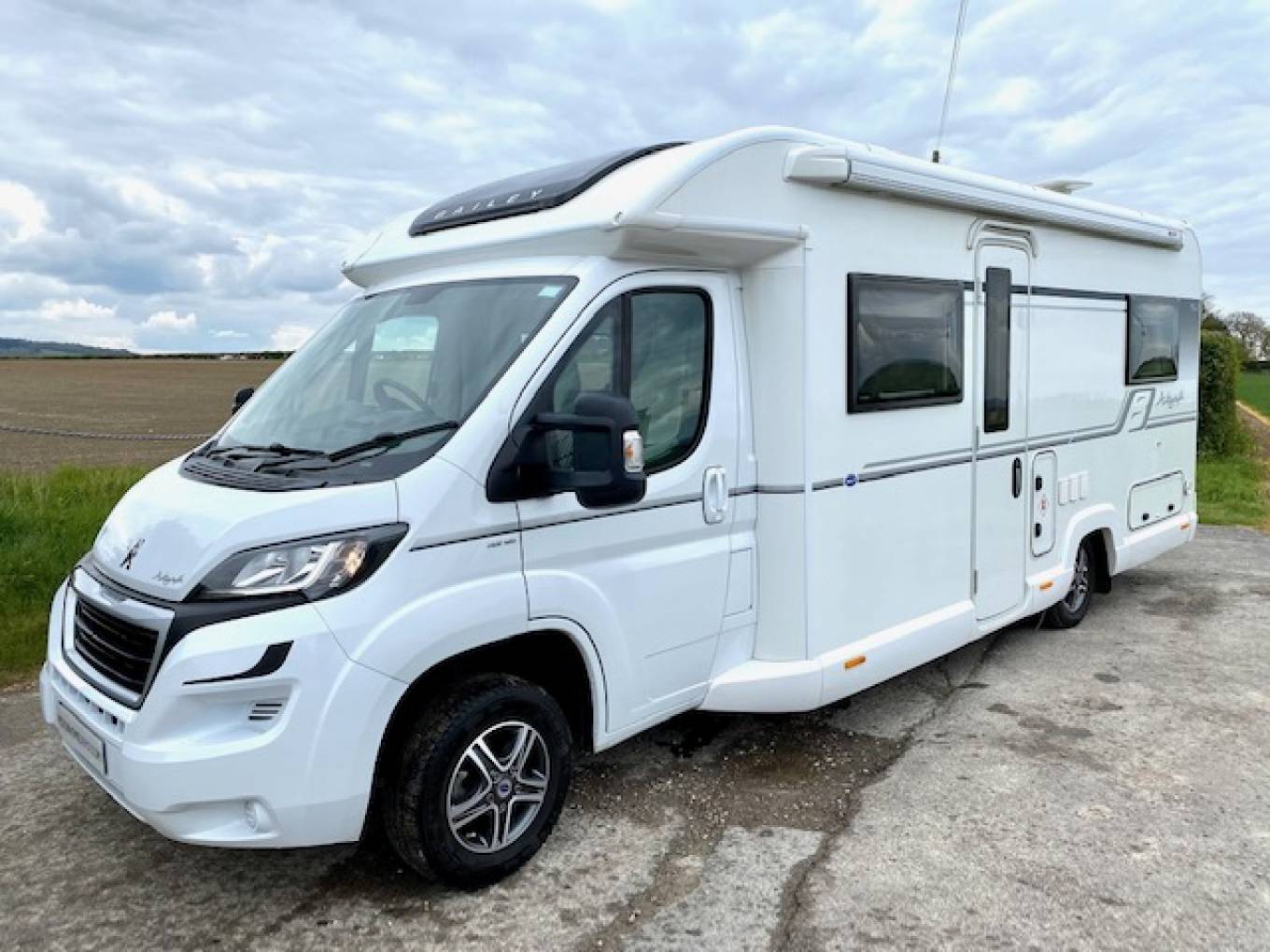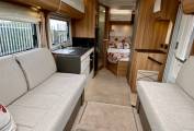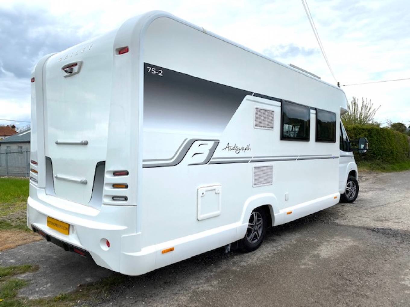 This 2017 4 berth, Bailey Autograph 75-2 motorhome features a rear French bed and two side facing bench seats, which convert into an additional double bed. The motorhome is light and airy with panoramic Heki roof lights and the habitation area feels very spacious. There are aero style lockers in brilliant white throughout the motorhome, which give a contemporary look whilst providing a practical storage solution. The large continental style kitchen area has a combi oven/grill and gas hob with 3 gas rings and an electric hot plate, a microwave, sink and 3-Way fridge/freezer. The wash room, located adjacent to the French bed consists of a wash basin, separate shower and electric flush cassette toilet. The cab area has swivel cab seats, a multimedia system including Bluetooth phone connectivity, multi-function steering wheel, electric windows and mirrors, cruise control, cab air conditioning and a reversing camera. This is a lovely example of one of the most desirable UK motorhomes on sale today! This one has been very well looked after and has covered just 11,500 miles from new. It was serviced in July 2020 and had a habitation check in August 2020. The MOT expires in August 2021. Two belted seats.