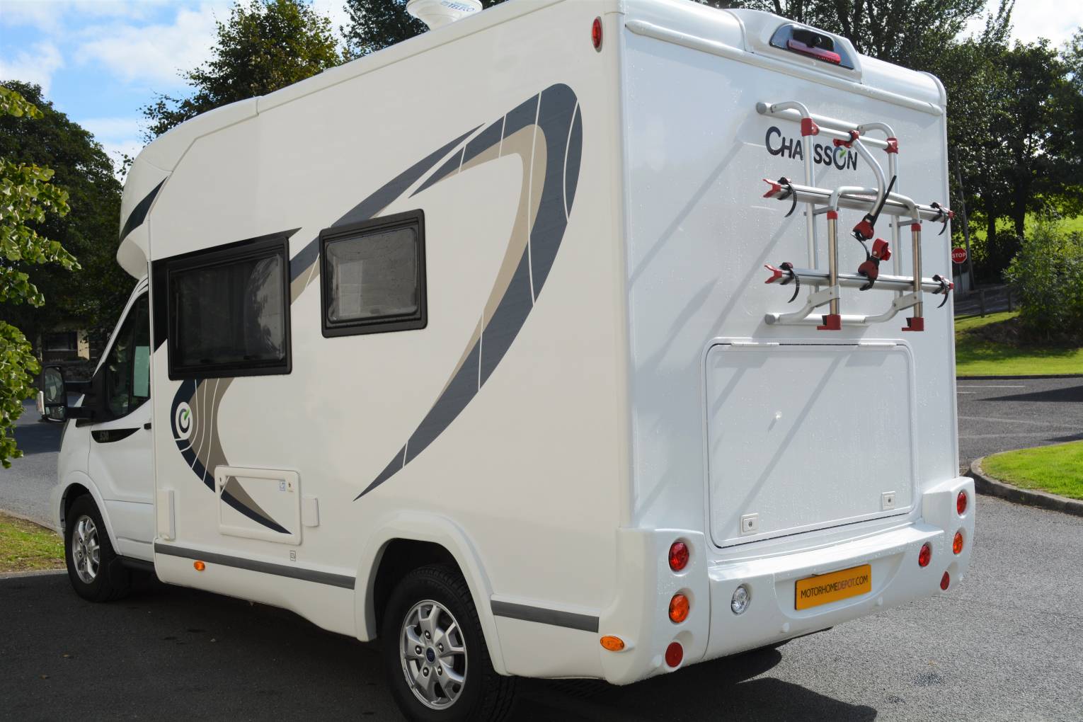 2017 Chausson 530 Flash Motorhome for sale. Presented in exceptional condition and offering an impressive specification list, this compact 530 Flash model is one to see. Based on the Ford Transit 350 Chassis with a 1995cc Euro 6 engine and 170hp power upgrade. The overall length measures 5.99 metres with a max weight of 3500kg and a payload of approx 650kg. The use of space is maximised throughout with a maxi washroom including separate shower and storage cupboard, spacious kitchen area with hob, grill and large 3 way fridge freezer. The maxi lounge area has twin swivel chairs and travel seats for 4 persons. Sleeping arrangements include a large drop down bed which also enables the lower lounge to be transformed into a double. This 530 model has the Chausson VIP pack fitted with air conditioning, cruise control, white coloured cab, front fog lights and passenger airbag. Other features include alloy wheels, Fiamma awning, Fiamma bike rack, rear hold area, LED lighting, on the road heating, reverse camera, TV bracket and roof mounted aerial. PLEASE CALL FOR FURTHER DETAILS. FINANCE AND PART EXCHANGE AVAILABLE.