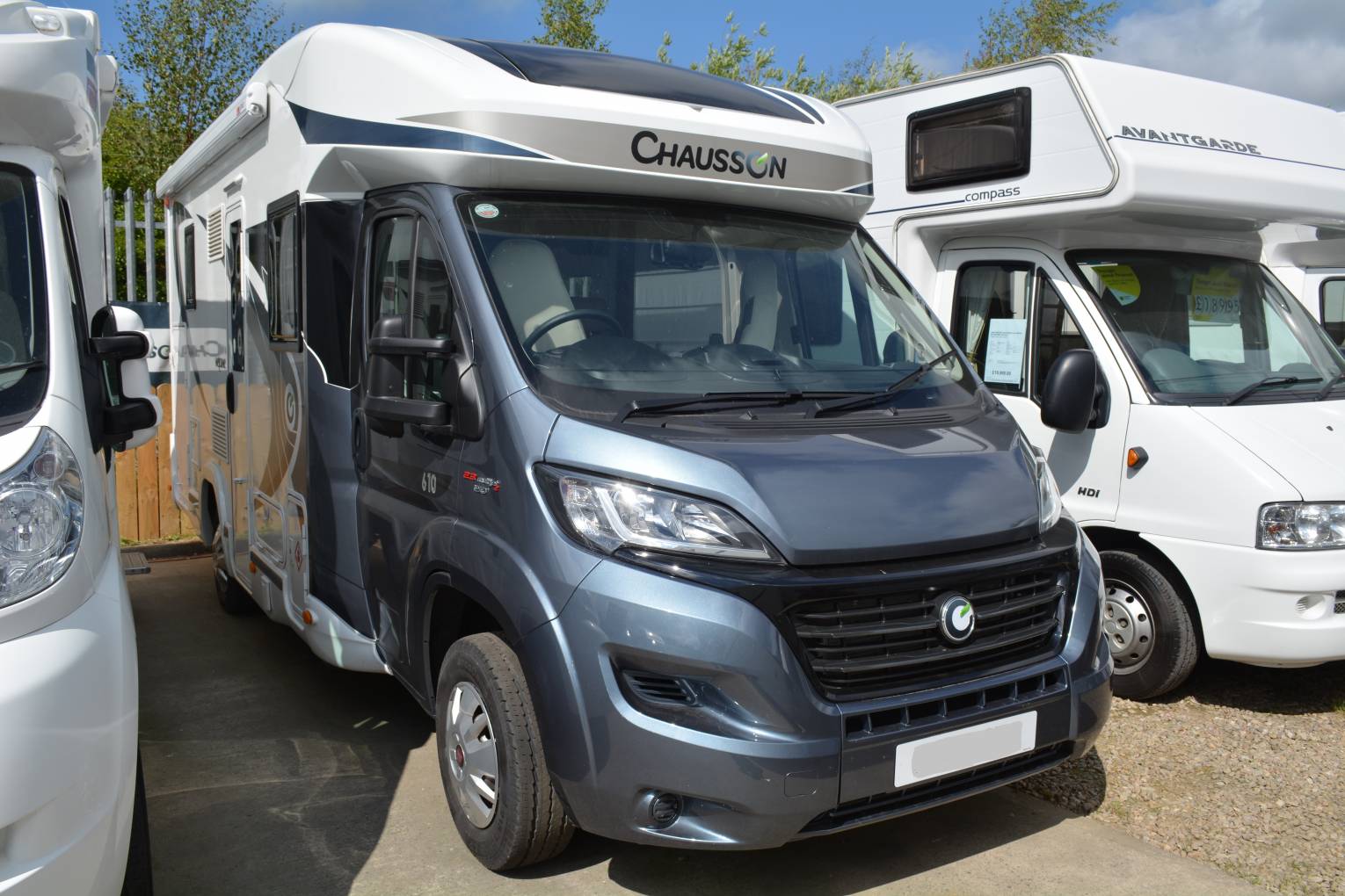 2017 CHAUSSON 610 WELCOME 4 BERTH MOTORHOME FOR SALE. Fiat Ducato based chassis, 150bhp upgrade, with a max weight of 3500kg and overall length of 6.9m. Excellent layout with a rear large garage, maxi washroom with separate shower, full fridge freezer, maxi lounge area with drop down bed and two additional seat belts. Other features include solar panel, awning, air conditioning, cruise control, colour coded cab and swivel chairs. FINANCE AND PART EXCHANGE WELCOME. PLEASE CALL FOR FURTHER DETAILS.