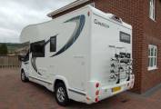 Outside is a four bike cycle rack, access to garage, service points and gas locker. This motorhome comes with TV and aerial, 1 gas bottle, hook up cable and is alarmed. Removable carpets are present but have never been unwrapped.