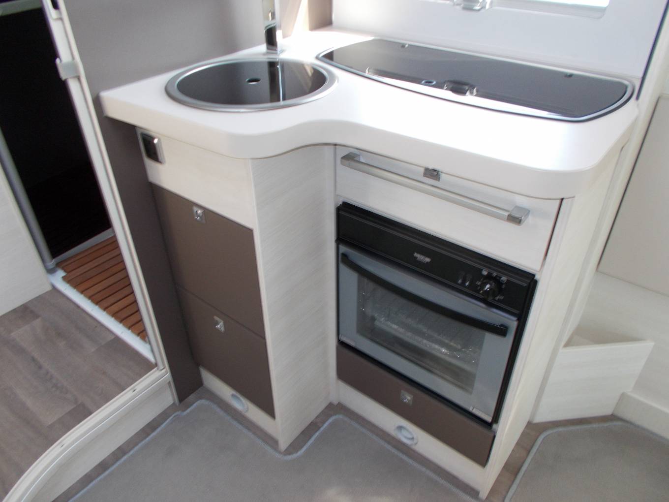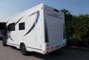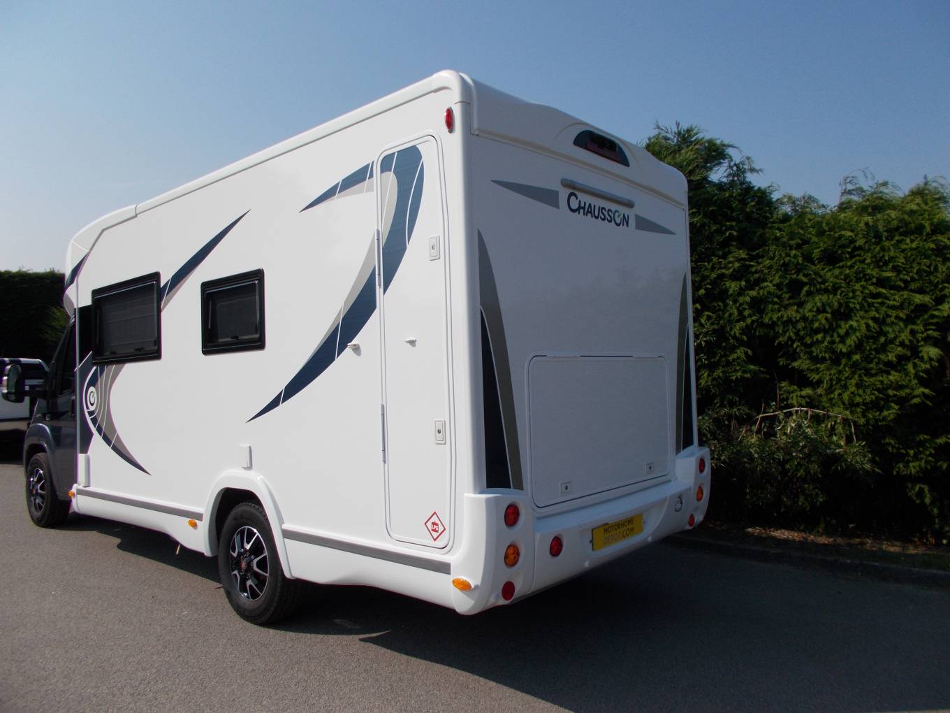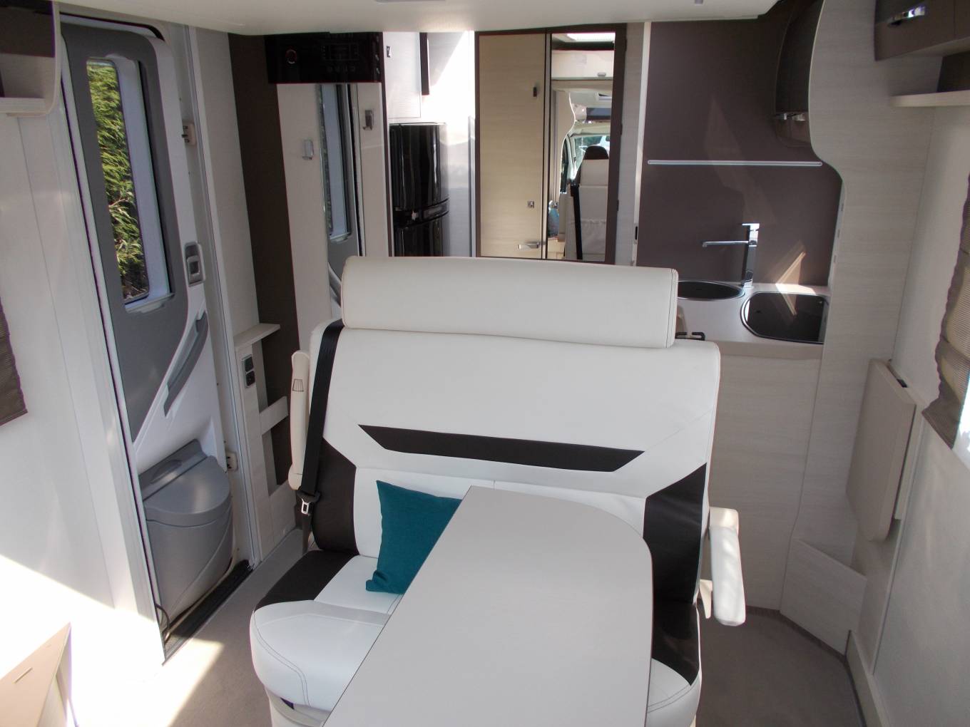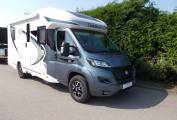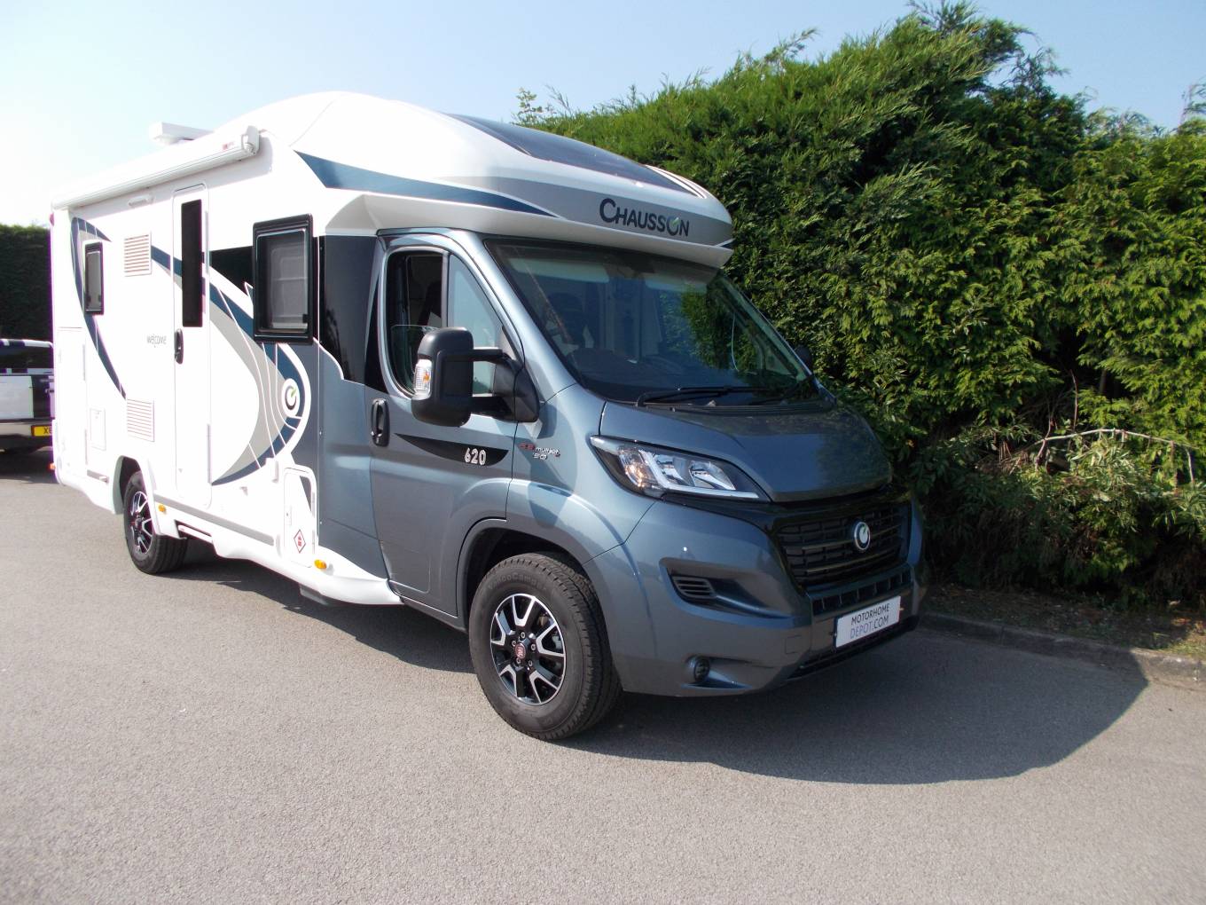 Here we have a luxury Chausson Welcome 620 in excellent condition both inside and out. The 620 is a blend of two previous models (the 610 introduced last year and the Suite), and includes something we haven’t seen before, a drop down electric island bed. Stepping inside you can see something is different. The first real clue is in the lounge, with a centrally mounted forward facing bench plus two small inward facing seats, 5 seat belts included. The good thing about the forward facing seat though is that it can recline. The large electrically adjustable table is big enough for four, and there might be room enough for six. It also drops to allow the roof bed to lower all the way down to seat height, and to make a second, lower berth with infill cushions. Further back in the motorhome is the relatively compact kitchen, with a 3 burner hob, grill, oven and sink on the passenger side of the vehicle and a large 3 way fridge freezer opposite. Right at the back you’ll find the same washroom as you find in the award-winning 610, the current Motorhome of the Year. The ample size of the wardrobe in it divides opinion, but it provides Chausson with the opportunity to offer a garage below that’s big enough for at least two bikes and has three exterior access doors. To lower the bed, you first have to make sure the cab seats are swiveled. They also need to be pushed backwards towards the dash as far as they will go. This is easier on this Ducato than it is on the Transit, as the latter’s sliding mechanism doesn’t rotate with the seat. You then need to drop the table to its lowest point and then recline the backrest for the travel seat to horizontal, before you lower the bed electrically. If you lower the bed until it will go no further, you can then slide the whole mattress and base towards the cab, creating full access on both sides, essentially an island bed. Despite what you might think this doesn’t take very long at all and you’ll soon have the routine finely tuned. The bed will not rise until you’ve pulled it back towards the kitchen. Other fitted equipment includes window blinds, insect screens, Webasto heating, Truma hot water, Cielo TV, Snipe 3 satellite system, Satnav, Cab Air Con, Vanguard alarm, Tracker and Electric hook up cable. Approximate dimensions, length 6999, width 2350, height 2920, weight 3500. Last Habcheck completed June 2019, only done 1263 miles. This fabulous Motorhome is located in Milton Keynes and must be seen to be fully appreciated. For further information, extensive photos and finance options please call Alan on 07525 841 632 or 01327 844 790.