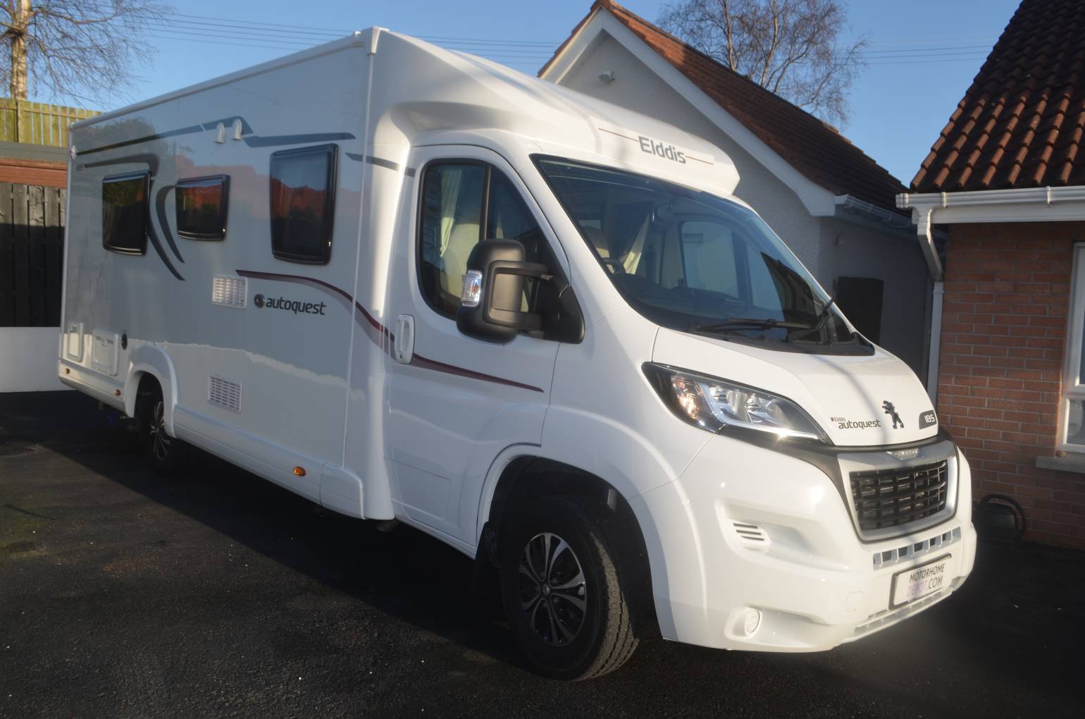 2018 ELDDIS AUTOQUEST 185 LOW-LINE MOTORHOME FOR SALE. Presented in excellent condition throughout. Based on a Peugeot Boxer 2.0TD chassis with 6 speed manual gear box. 2300 miles on the clock. Weight 3500kg, length 7.34 metres and width 2.2 metres. Cab area has 2 swivelling captains chairs, radio, Usb ports, cruise control, cab air con, central locking and cab blinds. Dinning area comes complete with a stowaway table. The long bench seats convert easily to make up a double bed and there is 2 additional forward facing seats with 3 point seat belts contained underneath the bench seats. Mid ship kitchen comes fully equipped with a 3 burner gas hob, oven, grill, sink, 3 way fridge freezer and microwave. Plenty of storage units throughout the habitation area. Washroom has a Thetford cassette toilet, wash hand basin, separate shower cubicle and built in wardrobe. Towards the rear you have 2 comfortable single beds. There is a privacy blind that separates the living area from the bedroom and bathroom. Whale heating system will run on gas and electric. Extras fitted include alloy wheels, Tv, reverse camera and a Tow bar.
