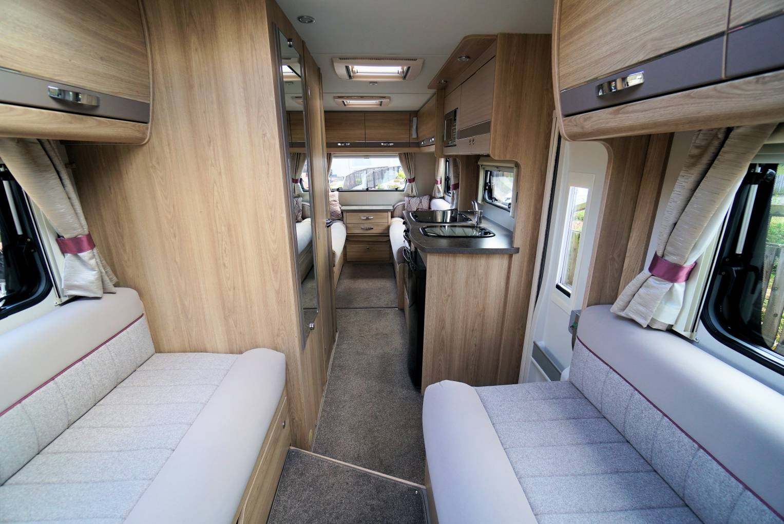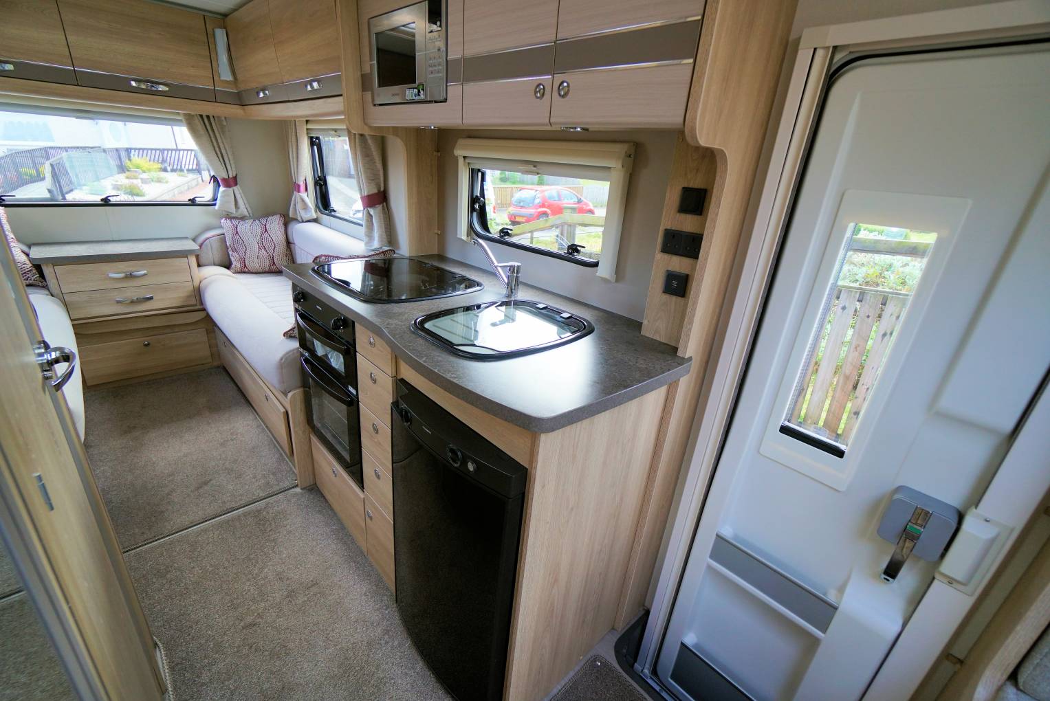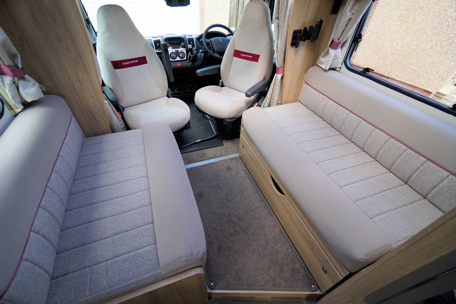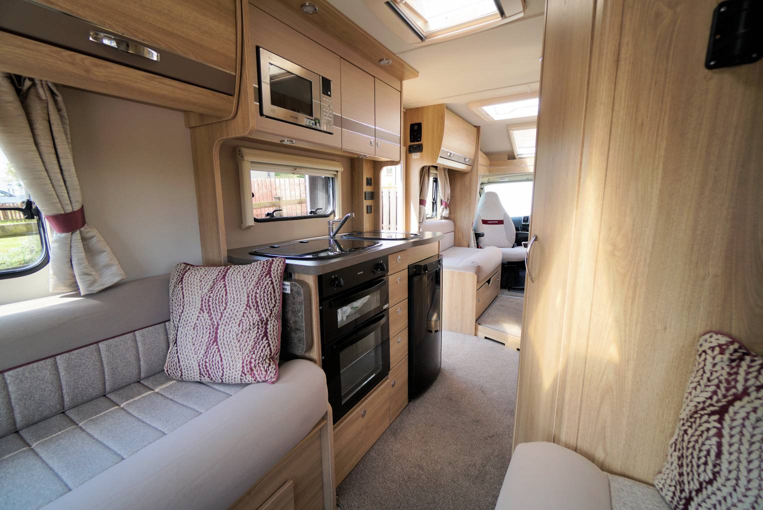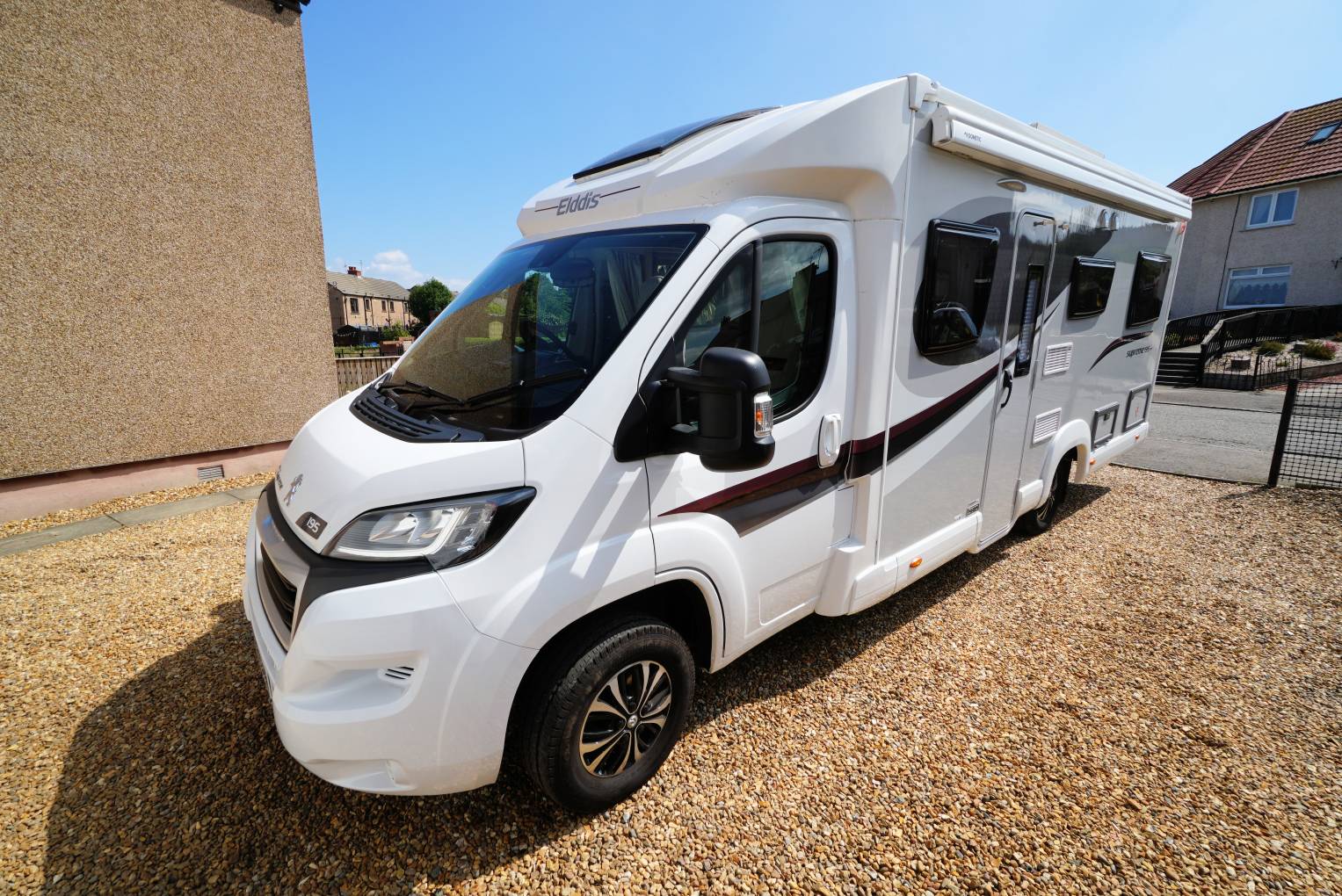 This 2018 Elddis Autoquest 195 (Supreme addition) is a light and spacious low-profile, 4-berth motorhome and is in lovely, as new condition throughout. Having four forward facing travelling seats, it is ideal for either a couple or a family of four with plenty of options for dining and lounging. The cab is based on the Peugeot Boxer with a 2.0ltr, Euro 6, 130 BHP engine with a 6-speed manual gearbox complete with cruise control, air-conditioning and reversing camera. The cab has Remis blinds fitted for night-time. When you enter the motorhome, on the left is a lounge / dinette area with a 2-seat and 3-seat settee and both front seats swivel into the area. A double bed is made up using the two settees. Below the settees you will find two, fold-away, forward facing travel seats. At the centre of the motorhomes is the very well-equipped kitchen area that has a 3-burner gas hob with one electric plate, grill and separate oven, sink with mixer tap, 3-way fridge with freezer compartment and a microwave. There is good storage above and below with sufficient work tops for food preparation. The adjacent washroom has a Thetford cassette toilet, wash basin with mixer-tap and shower with curtain. To the rear is the lounge area again with loads of storages above and below and really is a great place to relax. The settees convert into a large double bed or can be used as two single beds if preferred. Heating and hot water is provided by the Whale system and with removable carpets throughout this will be a cosy motorhome for year-round use. Externally you will find a Dometic wind out awning, bike-rack for 4 bikes, solar panel, TV aerial and an external shower point.