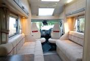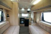 The Majestic is light and spacious inside, having two large rooflights, side settees and swivel cab seats. The central double bed is quick to make up too thanks to sliding bed frames with no infill cushions required. Underseat storage is easily accessed thanks to lifting seat frames. Towards the rear is a fully equipped kitchen with microwave, dual fuel hob, gas oven and grill, three way fridge, pull out worksurface and plenty of locker space. To the side is a good sized washroom with toilet, vanity sink and shower.