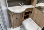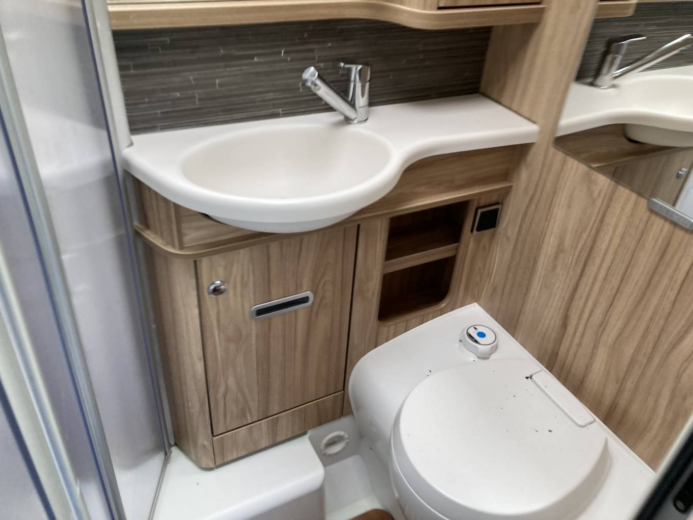The washroom is of a good size with the standard Thetford toilet, hand wash basin, vanity cupboard and a shower with a seperate tray and doors.