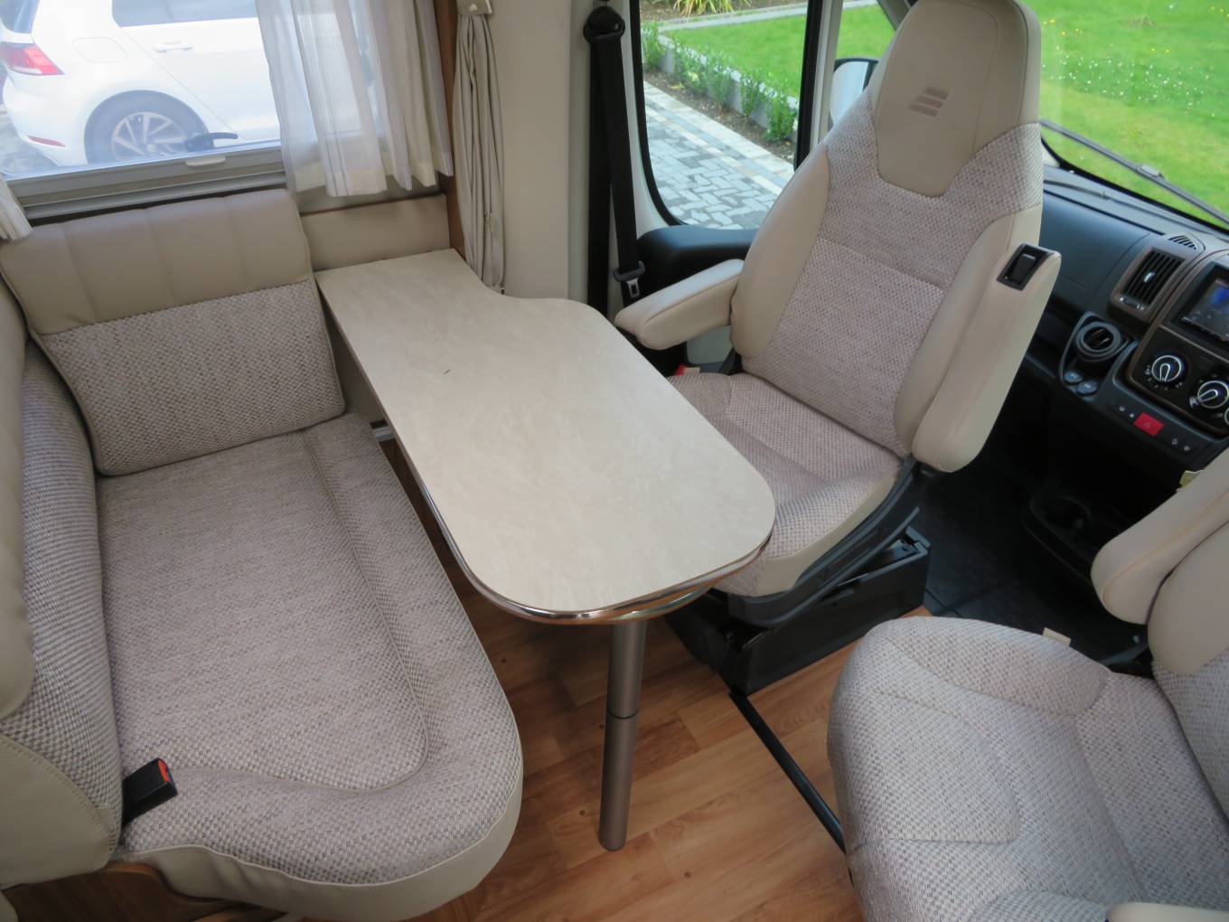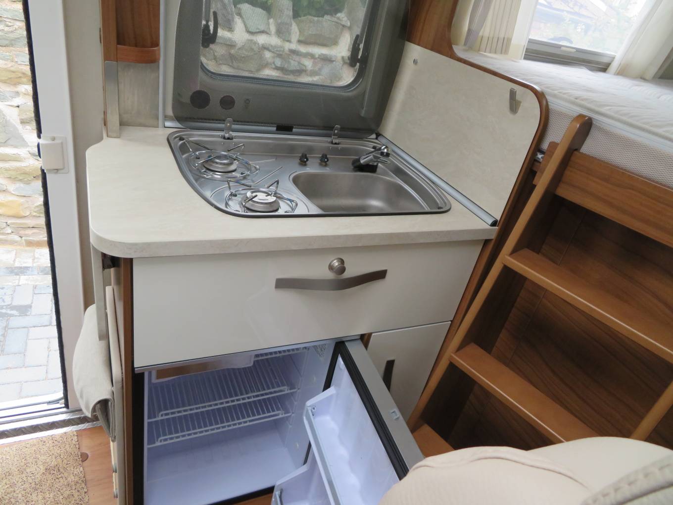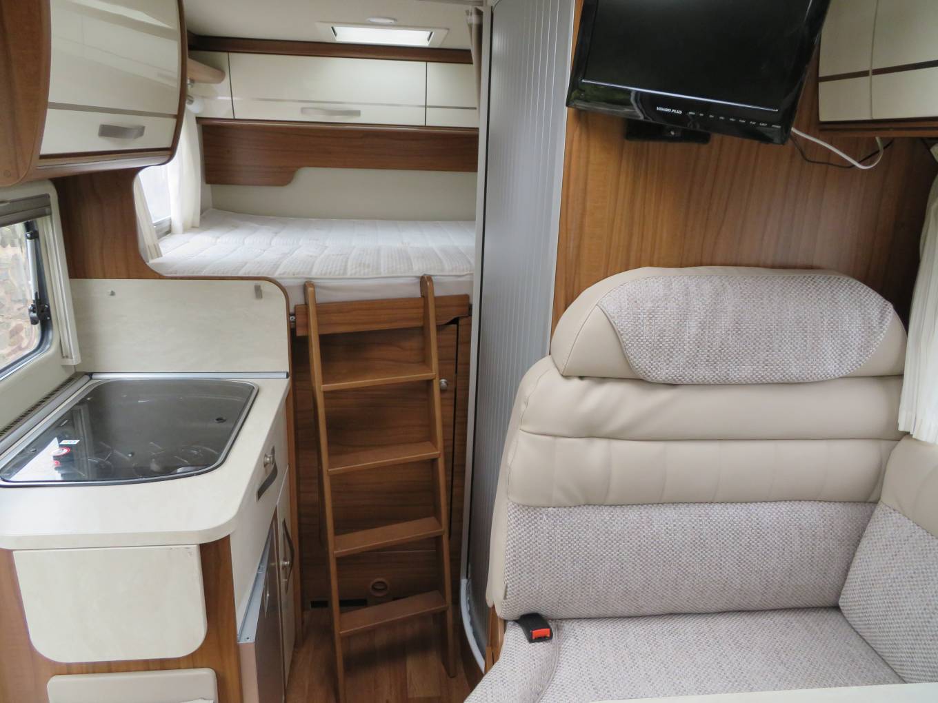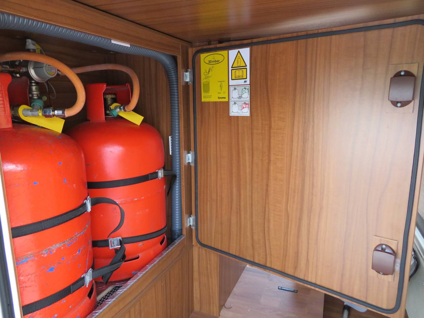 Externally the van has alloy wheels, colour coded bumpers, a wind out awning and a rear bike rack for two bikes. The garage is accessible from both sides and houses the large gas cupboard with two gas bottles connected to the Truma duo control system.