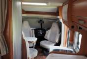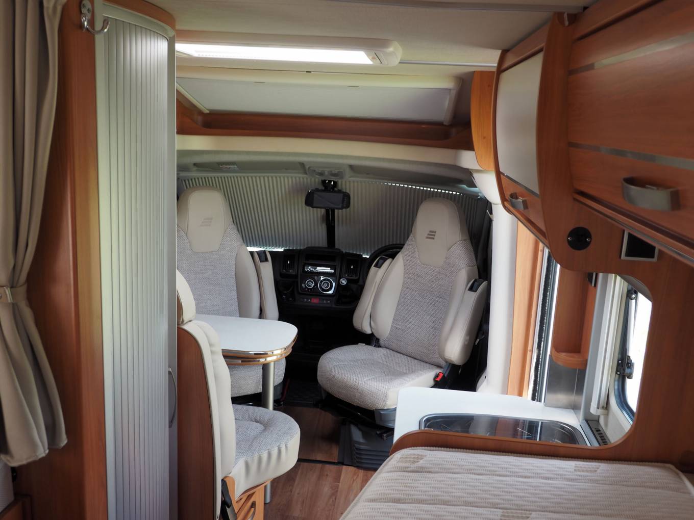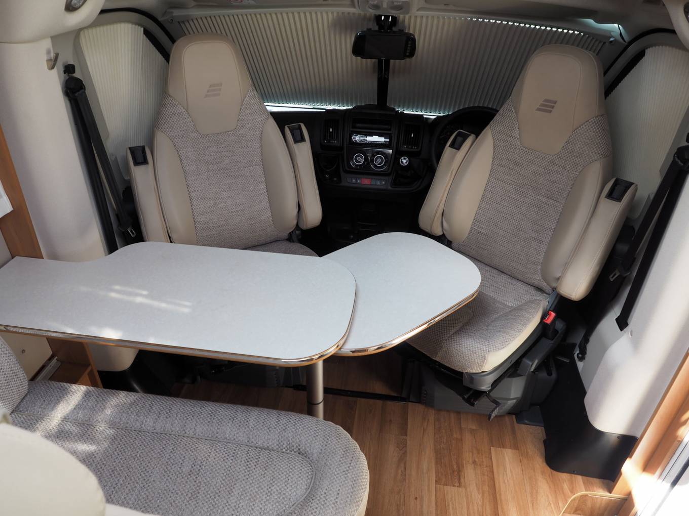 Onboard and fitted equipment includes dual fuel heating and hot water with frost protected 100 litre fresh and waste water tanks, two burner gas hob, 12v fridge, 150w solar panel, alarm, roll out sun canopy. In the cab you will find cab air conditioning, cruise control, opening sunroof, twin view reversing camera, radio, integrated night blinds.