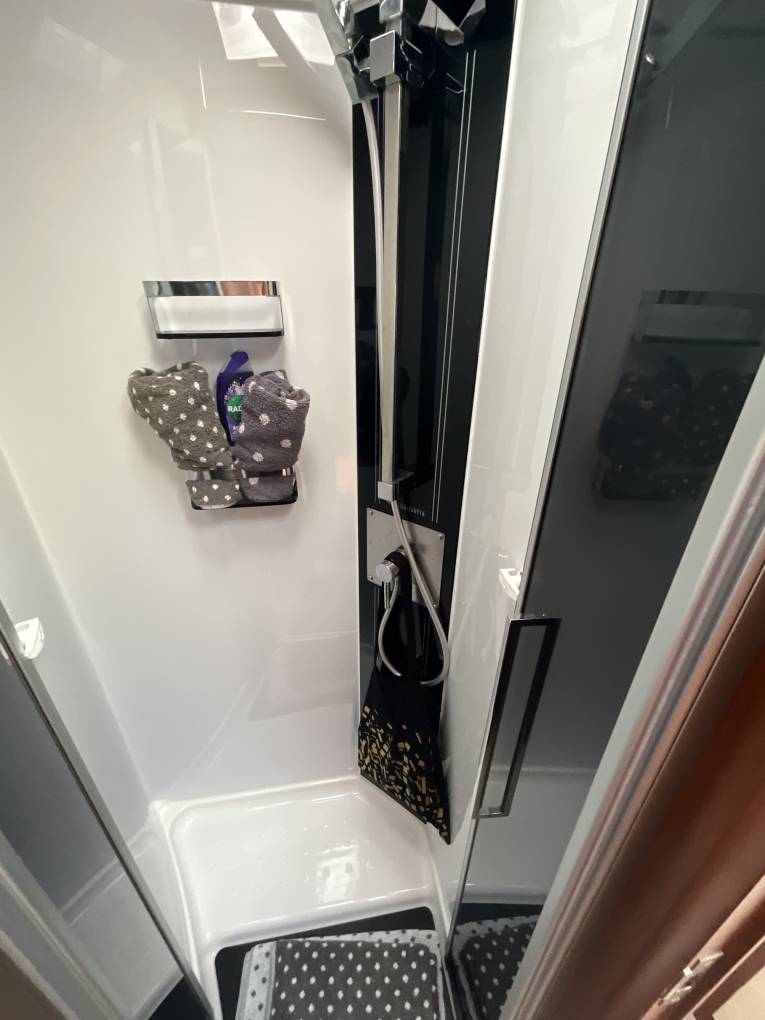 Externally you have a large garage which is accessed from either side. With the facility of the rise and fall bed there is enough height to store a couple of electric bikes plus any other accessories you require for your travels. Also there is a outdoor gas point and a shower point.