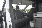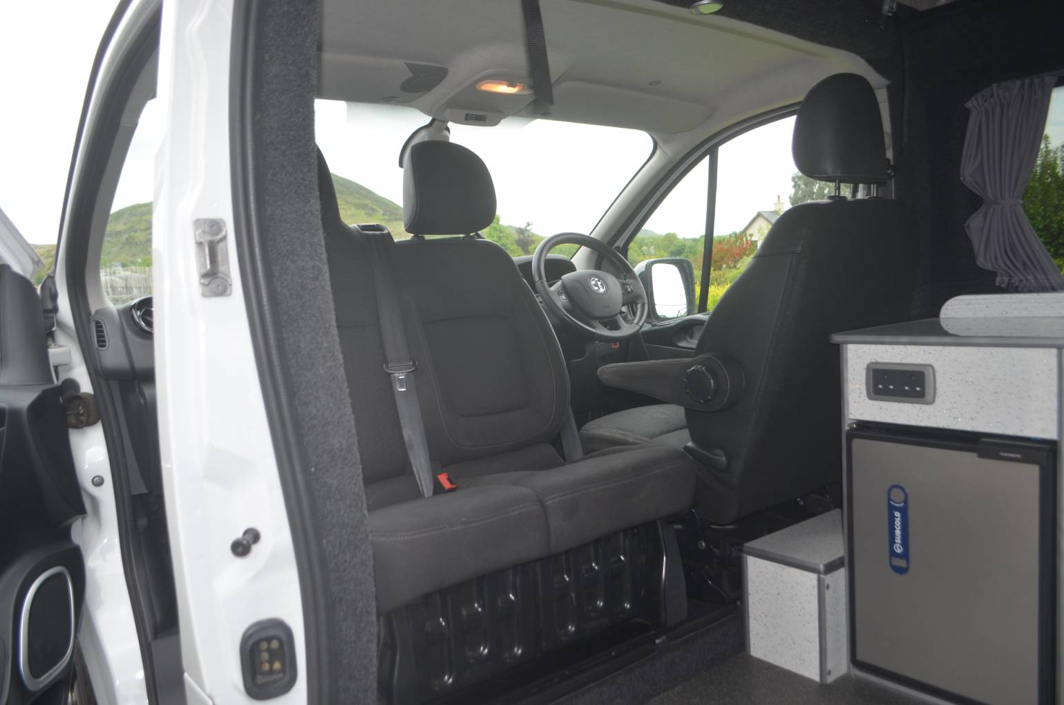 Cooking facilities include a portable cooker that can be used outside as well as cooking inside and a fridge. The dining table can be stowed away while travelling. The two front seats will swivel round onto the lounge area. Great storage lockers for all your travel essentials.