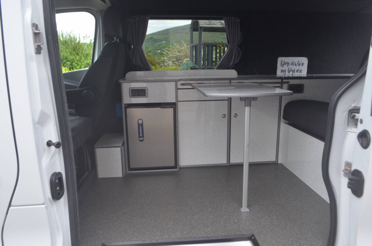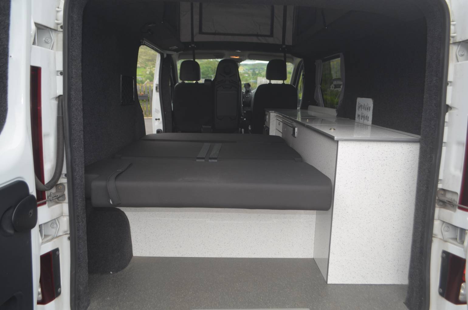 Professionally converted the campervan has great head room with the roof elevated. There is 2 sleeping places in the pop top and another 2 sleeping places on the Rock n roll bed.