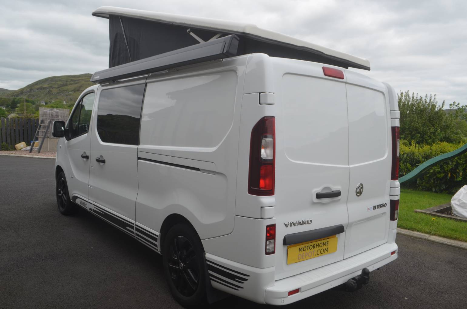 2018 VAUXHALL VIVARO 2900 CDTI SPORTIVE POP TOP CAMPERVAN FOR SALE. Based on a Vauxhall chassis with a 1.6 litre engine and 6 speed manual transmission. Full service history present and Motd until Febuary 2025. 74,500 miles travelled. The campervan is registered in NI. Sleeping places for 4 people and has 5 travelling seats with 5 fitted seat belts.