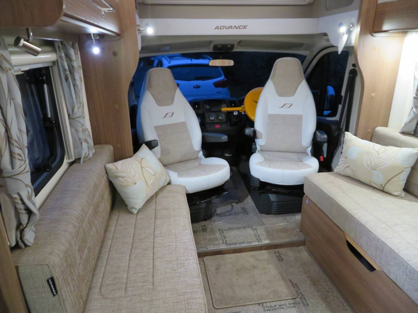 Motorhome Depot presents this beautiful 8 month old Bailey Advance 74-2, situated in Kington, Herefordshire. The vehicle has hardly been used, the protective film is still on the carpets and there are no marks or any faults to be found. The vehicle has had many extras installed from new including, Solar panel with leisure battery, 2 TV brackets including power points and aerial points, Orbital shower head, External 240 volt power socket with aerial point, Brand new winter cover and Bailey bedding set.