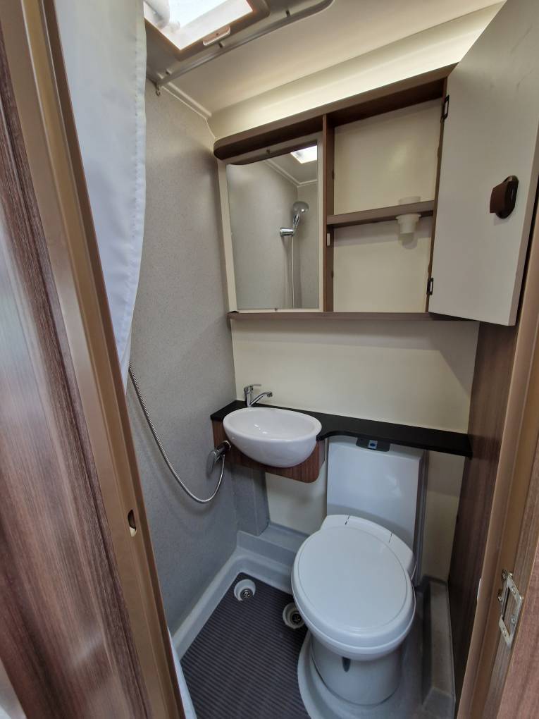 Washroom - Electric flush cassette toilet - Sink - Shower.