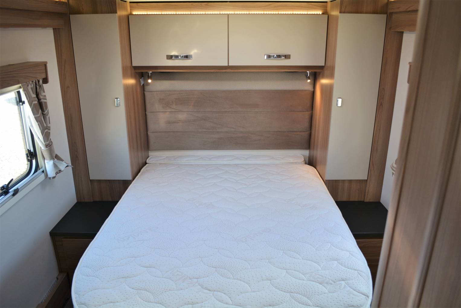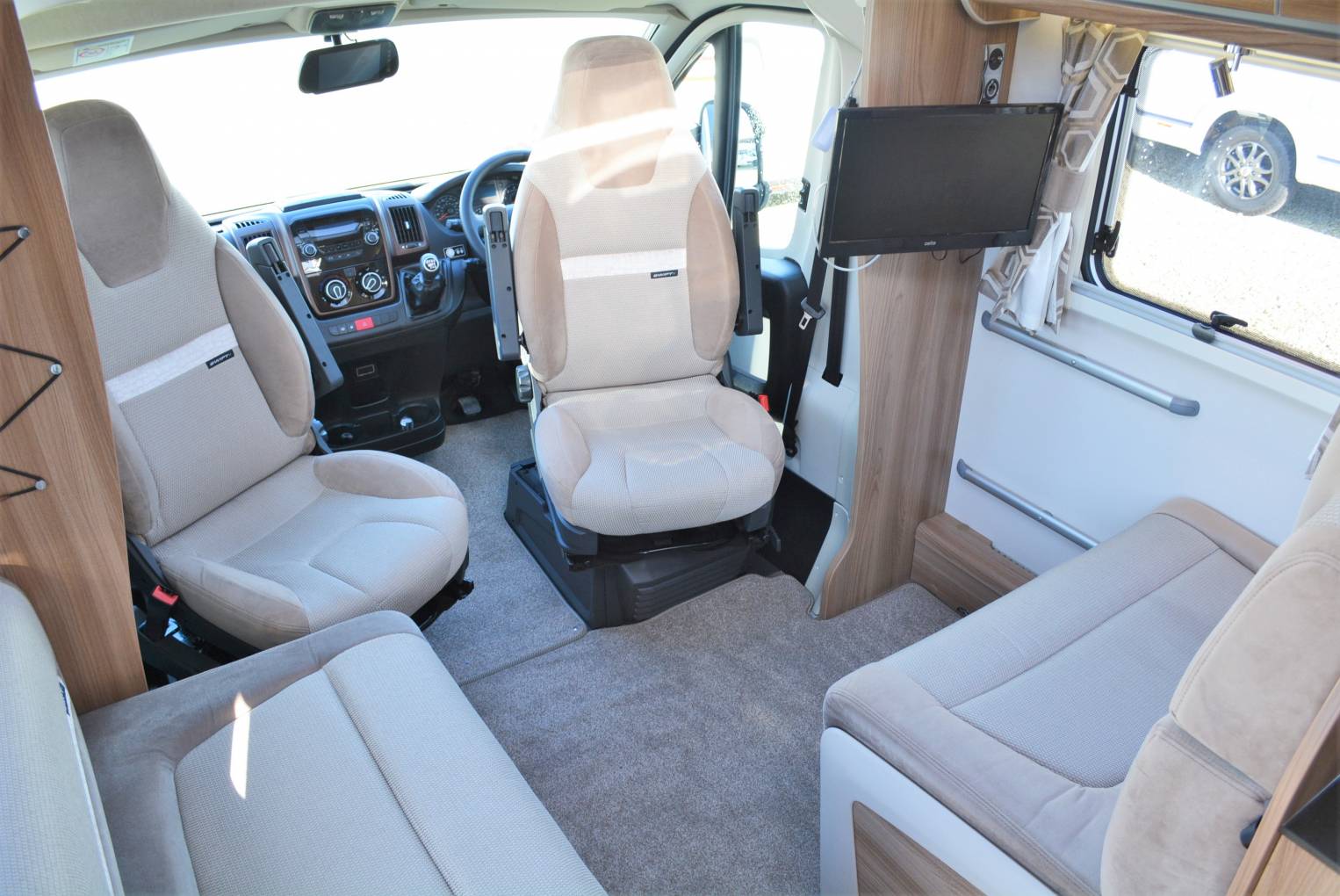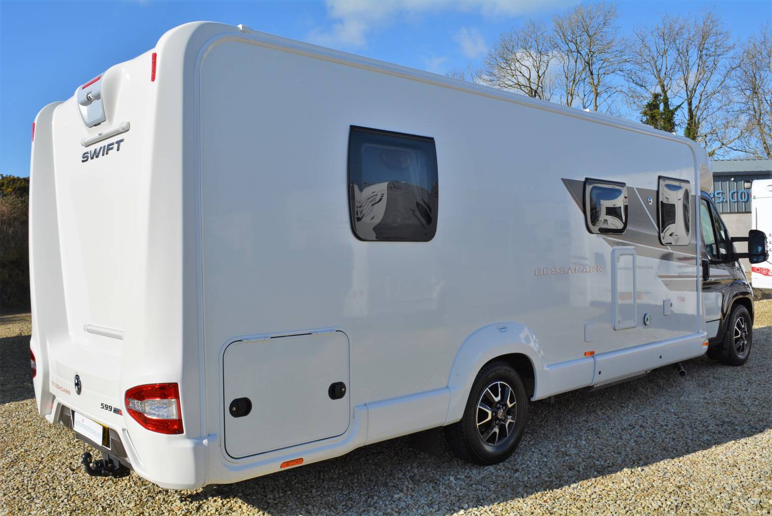 **viewing by appointment** 2019 Bessacarr 599 luxury fixed bed model for sale. Presented in beautiful condition having traveled only 8550 miles with a huge specification list which exudes luxury throughout. The chosen chassis by Swift is the trusted Fiat Ducato 3850 kg chassis with a 2300cc 150hp upgraded engine and manual 6 speed transmission. Please note a C1 license is required to drive this motorhome. Offering an enclosed bedroom area with an extendable fixed island bed and ensuite washroom with separate shower cubicle giving privacy from the main lounge area and increased comfort for those longer breaks away. The spacious front lounge area features twin swivel chairs, 2 additional travel seats, sleeping places for 2, large sunroof giving increased light, a TV and is compliments by ambient Led lighting. This leads into the midship galley with a full cooker including oven, large 3 way fridge freezer, extractor fan, sink, hot water, microwave and plenty of storage space. Other features of this 599 FB model include large hold area accessed externally from either side, gloss black colour coded cab, 16" Fiat alloy wheels, daytime running lights, awning, solar panel, tow bar, twin lens reverse camera, cab shades, cab air con, cruise control, factory fitted entertainment unit, Alde heating and aerial. Sale includes 1 years warranty with recent habitation inspection just completed. Finance and part exchange available. Please call for more details...