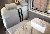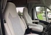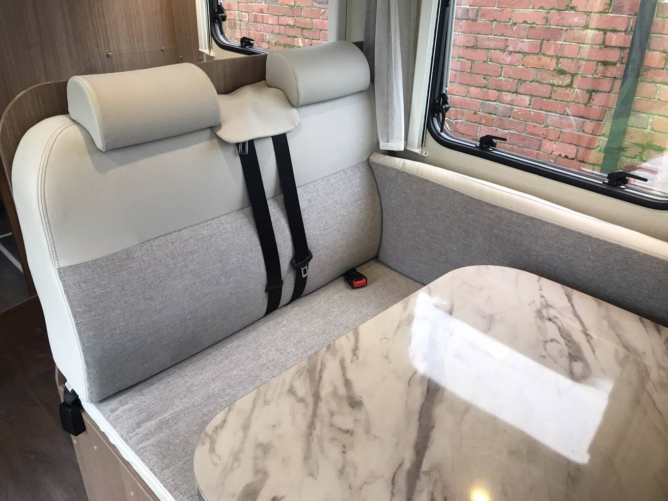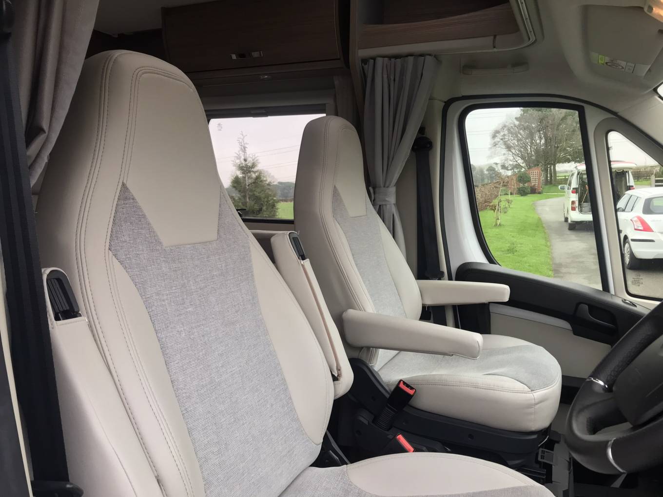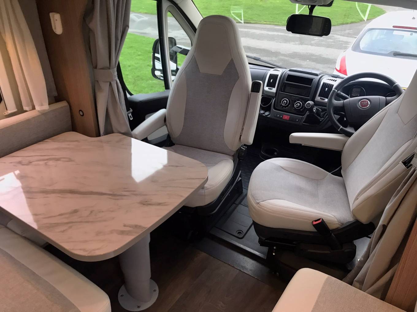 The two front seats swivel to add seating to the front dinette. Which would comfortably seat 6. Above this is a drop down bed which has not been used.