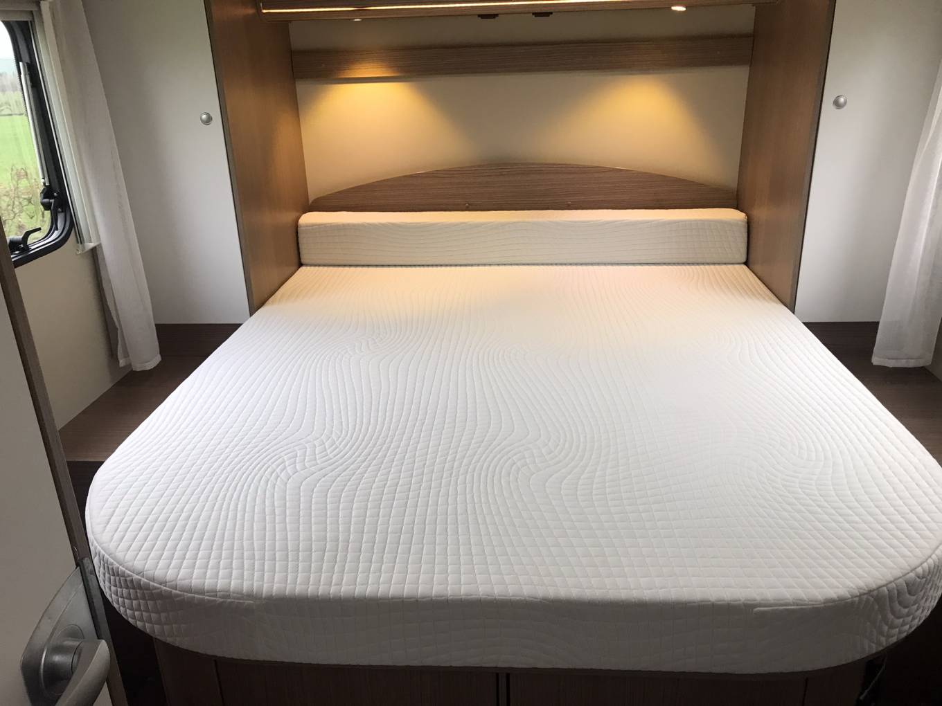 Rear Bedroom model with island bed and plenty of storage, both under the bed and in the lockers/cupboards.