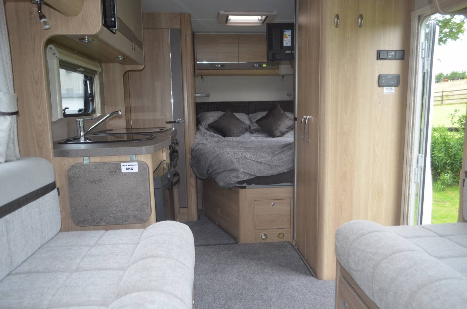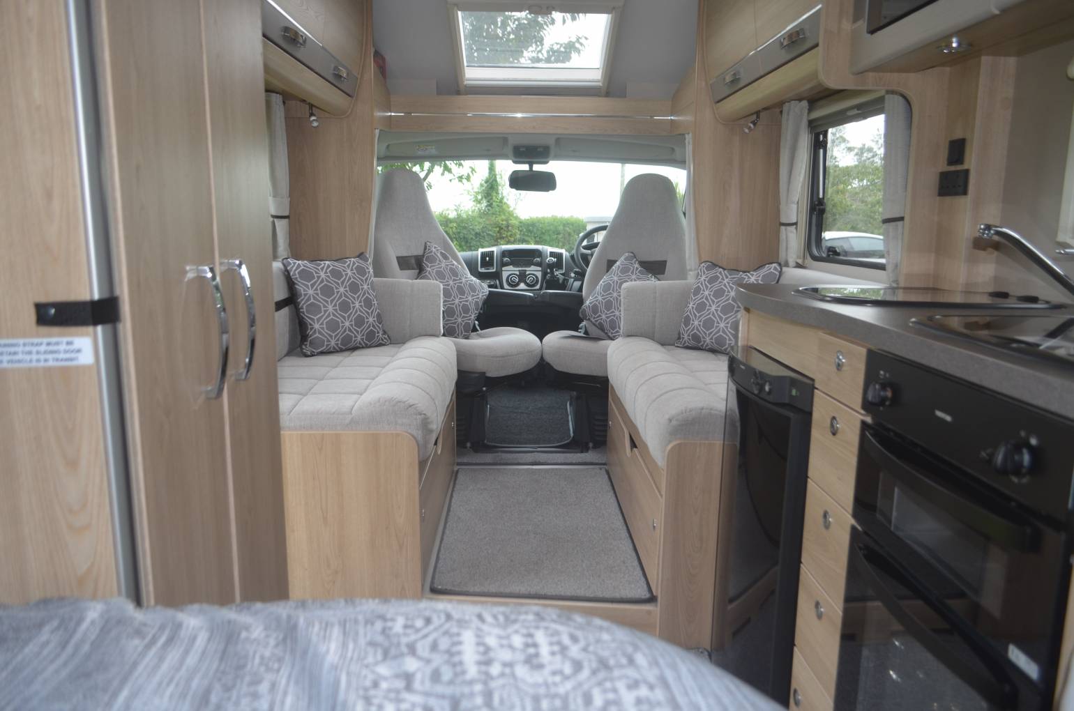 2019 ELDDIS AUTOQUEST 155 EXCLUSIVE EDITION FOR SALE. This luxurious motorhome is in excellent condition and is presented with a high specification list. Based on the popular Peugeot Boxer chassis with a 2.0L engine and 6 speed manual transmission. Weight is 3500kg and can be driven on the ordinary car licence. Length 7.02 metres and 2.69m in width. Habitation check was carried out in January and the motorhome has been serviced. At the rear you have a corner fixed bed with storage lockers above and storage also below the bed. Your end bathroom is compact with shower, cassette toilet and wash hand basin. There is a privacy blind between the lounge and the bedroom. Mid ship kitchen is fully equipped with a microwave, 3 burner gas hob and electric plate, 3 way fridge freezer and sink with good work top space. Your lounge area will seat 6 people for dinning and the bench seats convert into another double bed. There is a stowaway table for dinning. The cab area has 2 swivelling captains chairs, cruise control, electric windows, DAB radio/USB, window blinds, reverse camera and a drivers air bag. Extras fitted to the motorhome include an alarm, TV, Tow bar, solar panel, external shower point, outside bbq point, Gaslow, a bike rack for 4 bicycles, a wind out awning and alloy wheels