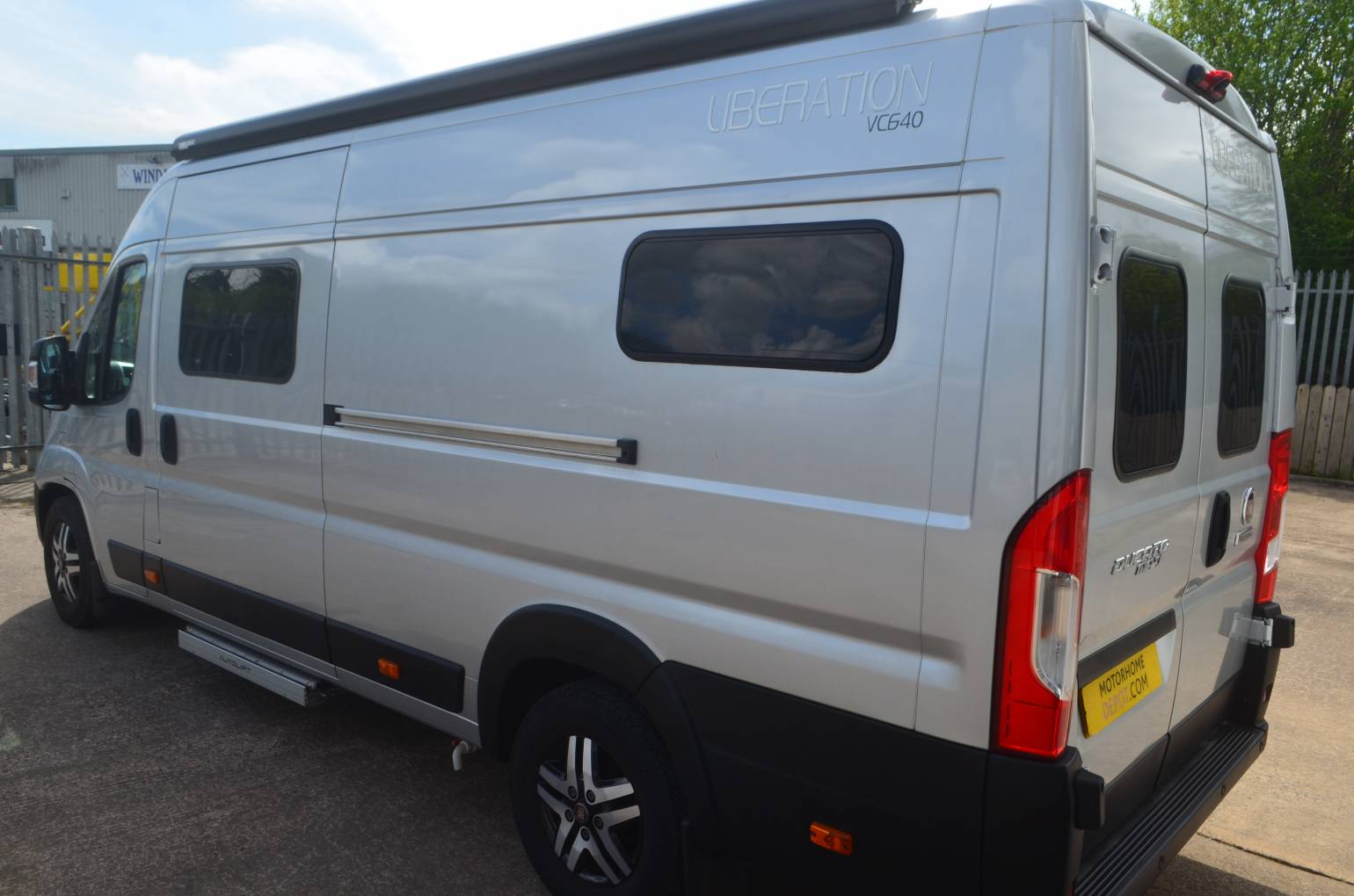 2019 FIAT DUCATO LIBERATION VC640 CAMPERVAN CONVERSION FOR SALE. Based on a Fiat chassis with a 2.3 engine and 6 speed manual transmission. Weight 3500kg, length approximately 7 metres and width 2.2 metres. 4350 miles travelled. Serviced in May 2021 to keep manufacturers warranty up to date and habitation check December 2020. The camper van has been custom built by Brooke Miller Mobility. Suitable for a quadriplegic disabled persons needs. They have covered all aspects of the interior to help assist with creating space to allow wheelchair access. The conversion features an underfloor Autolift wheelchair lift at the sliding door, with floor space behind the cab seats suitable for wheelchair tie down. A ceiling hoist has been installed and runs from the rear to the front of the camper van. It can also be powered by an inverter if you are not on a camp site. A large wet room is provided with a cassette toilet, shower and a wash hand basin. You have privacy doors fitted between the two areas. Kitchen facilities include a 3 way fridge freezer, 2 gas burner hob, microwave, sink and glass covers to maximise work top space when not in use. To the rear your double bed has storage underneath and another tilting single bed that can be stowed away while travelling. Cab area has 2 swivelling chairs, radio, cruise control, electric windows, mirrors, central locking and another passengers seat behind the drivers with a 3 point seat belt. Extra items fitted to the camper van include an inverter, a Fiamma awning, Phantom tracker, alloy wheels and Webasto Diesel night heater.