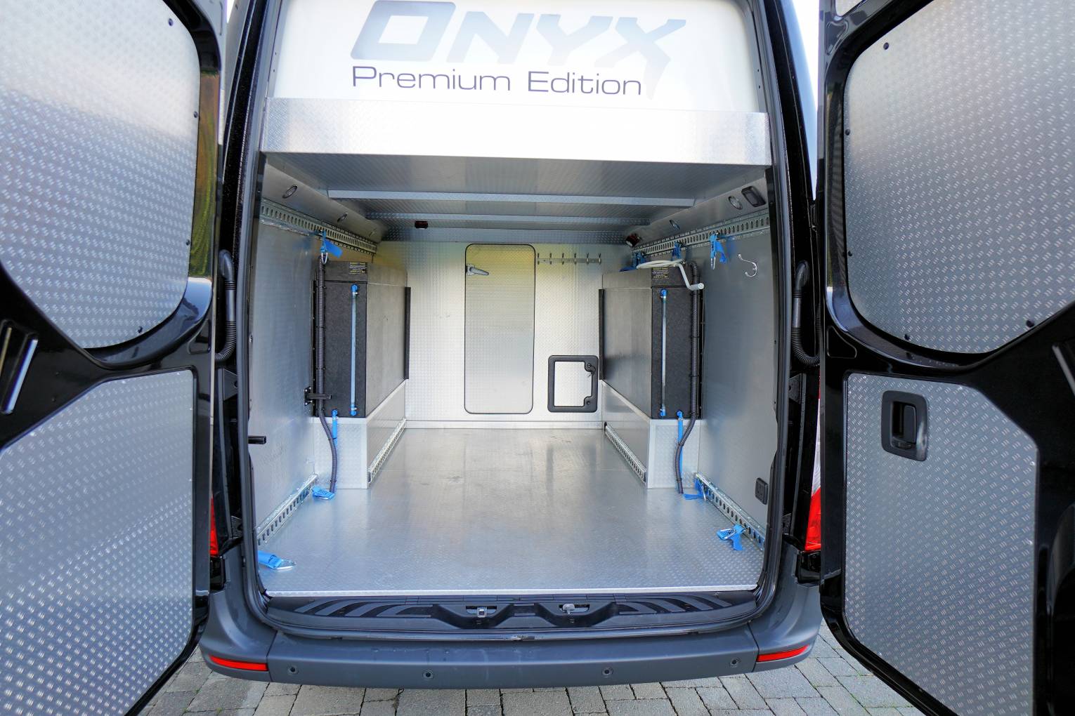 Based on a Mercedes-Benz Sprinter 314 CDI complete with a 140hp, 2.1 litre engine and 7-speed automatic gearbox. Finished in Obsidian black metallic paint with matching black 20” Wolf Design Renaissance alloy wheels, it looks fantastic.