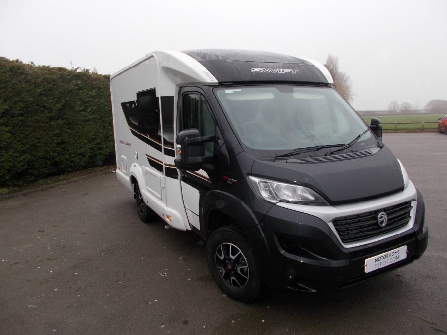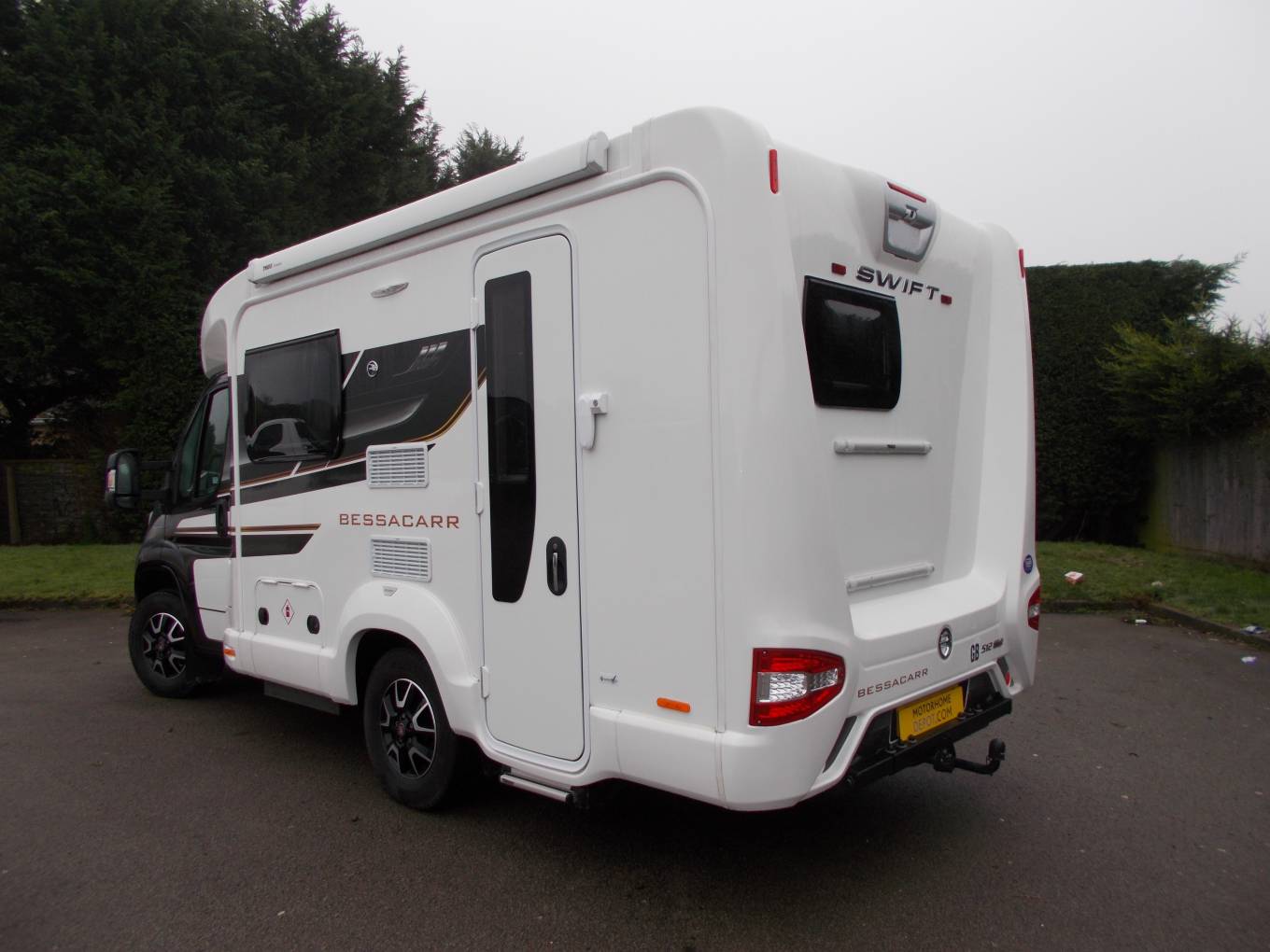 SWIFT BESSACARR 512 2 Berth. First registered in September 2019 and has only covered 3723 miles. Powered by a 2.3 JTD Diesel Euro 6b engine, 6 speed manual gearbox with cruise control, power steering, air con and electric front windows. Length 5990, Width 2380, Height 2820, Weight 3500. This Coachbuilt motorhome provides 2 berth accommodation with a centre lounge including driver and passenger swivel seats. The end kitchen comprises cooker (hob, grill and oven), microwave, 3 way fridge & sink. The bathroom benefits from a separate shower, sink and cassette toilet. This motorhome has mains electricity connection, gas and 240v hot water and heating, blinds and screens and two belted front seats. Additional Features include: Alde heating, Awning, TV Ariel, Electric Step, Alloy Wheels, Reversing Camera, Tow Bar, Security door locks and a Solar Panel which can charge either the engine or leisure battery. Located in Bletchley MK3. For extensive photos, additional information or to request a viewing please call Alan on 07525 841 632 or 01327 844 790. In excellent condition both inside and out, must be seen to be fully appreciated.