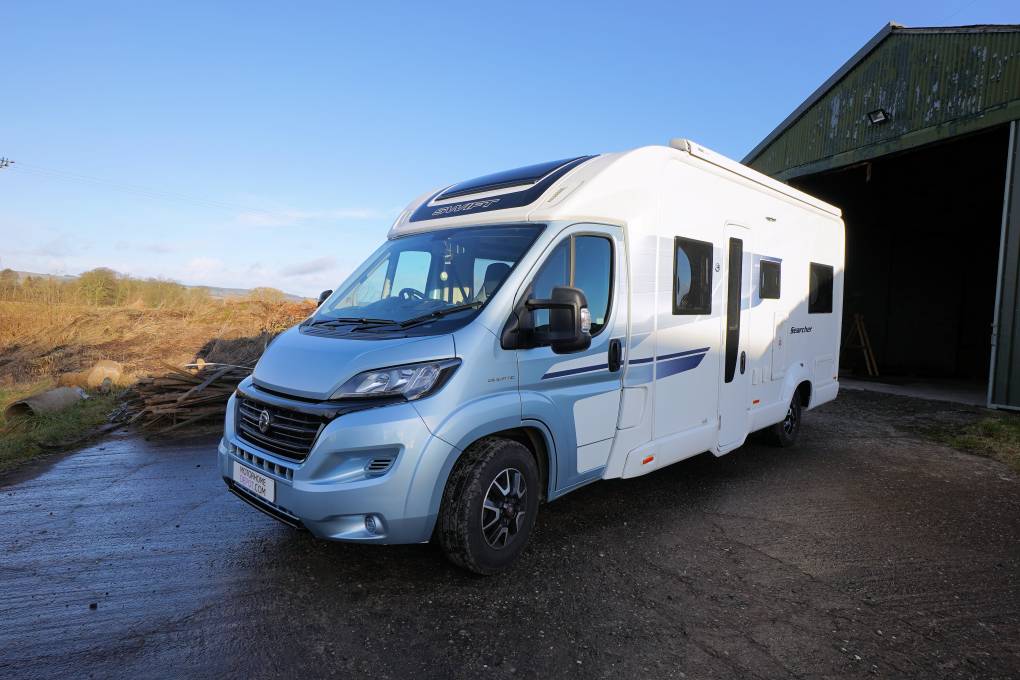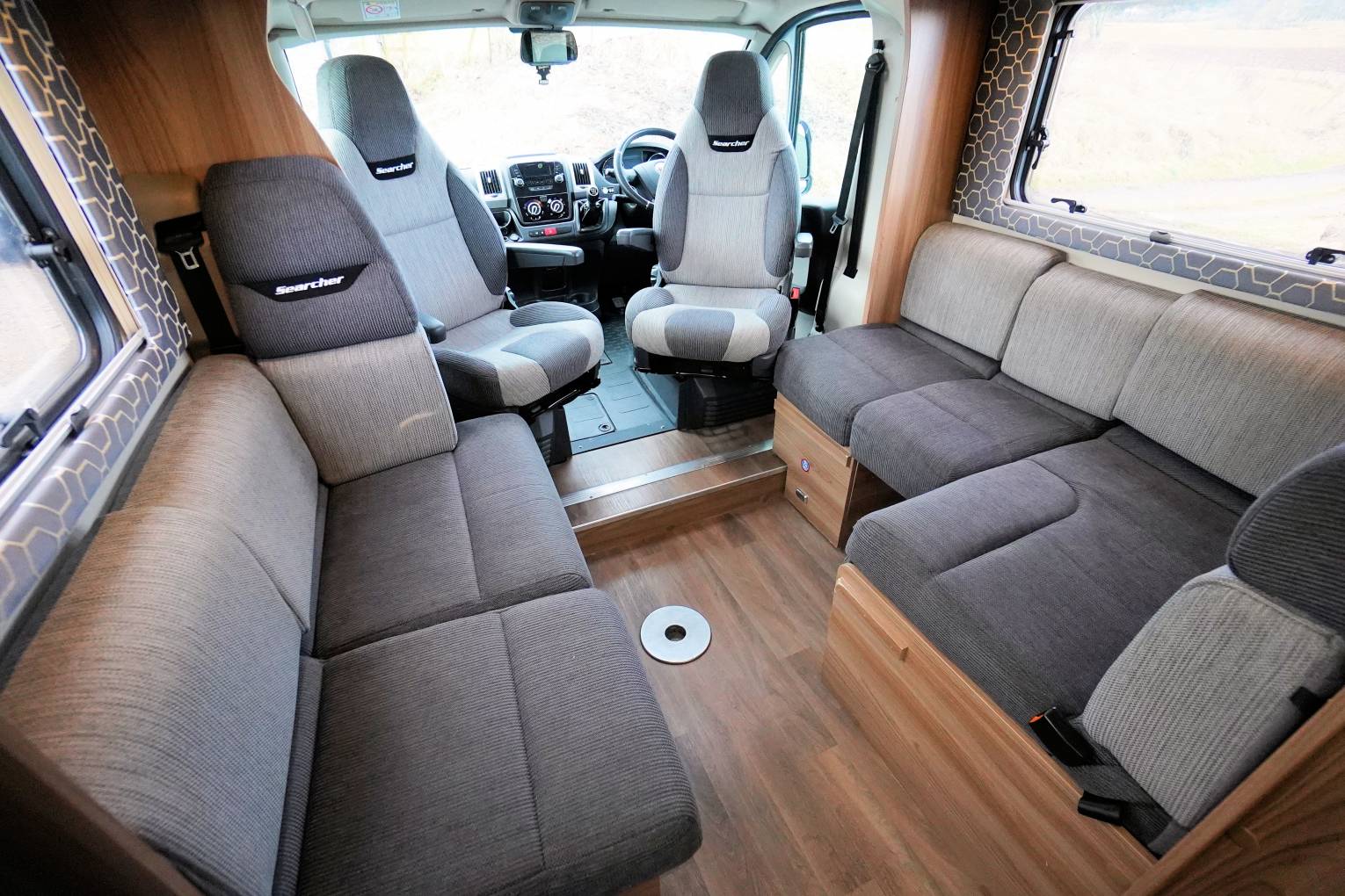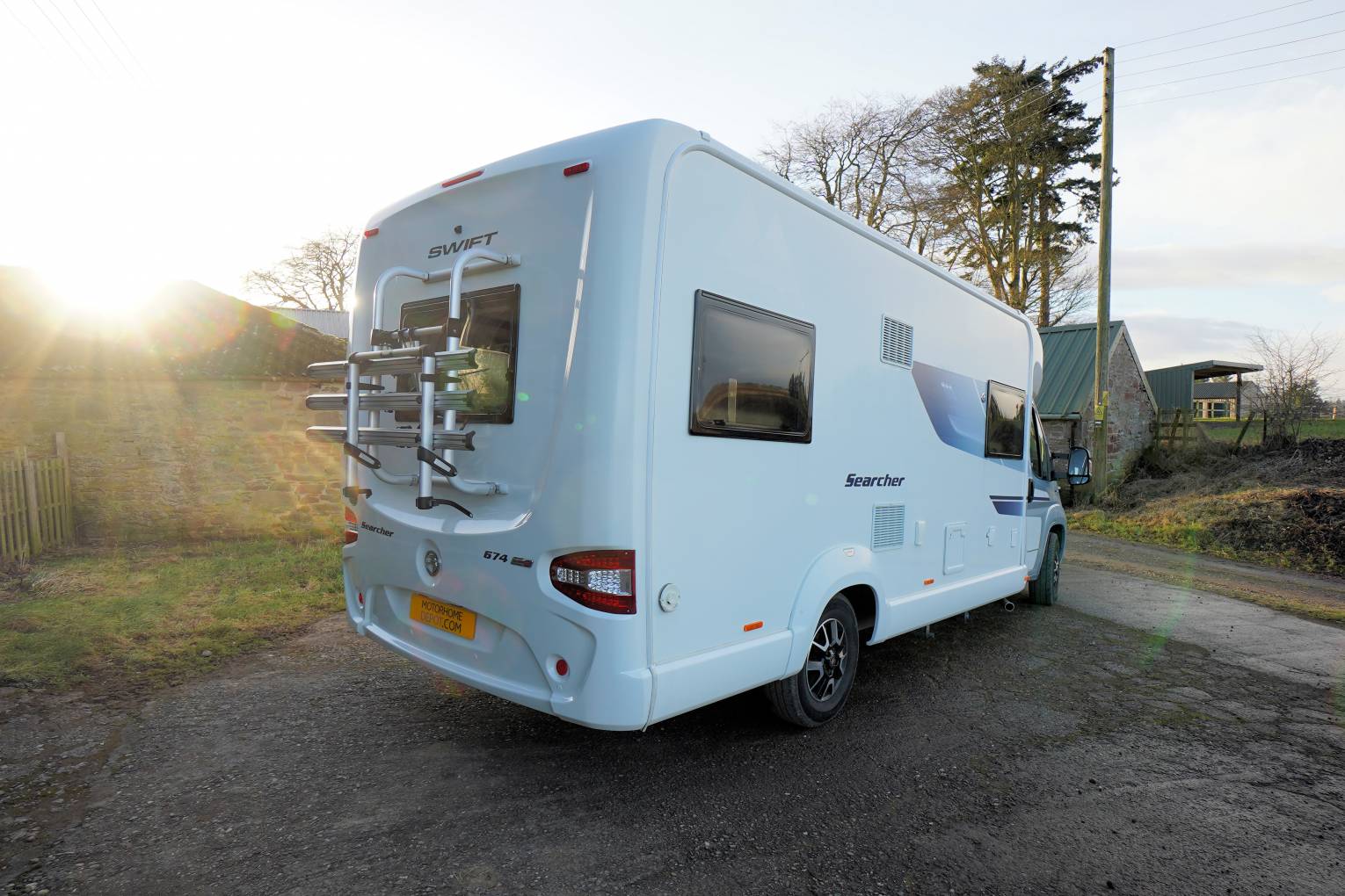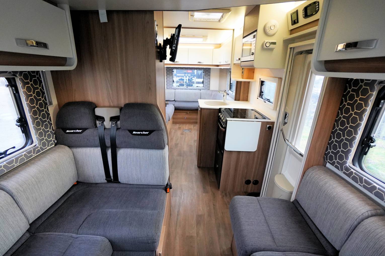 For sale we have a 2019 Swift Escape (Searcher) 674, 6-berth, 5-seatbelts, end-lounge, drop-down double bed, low-profile motorhome.