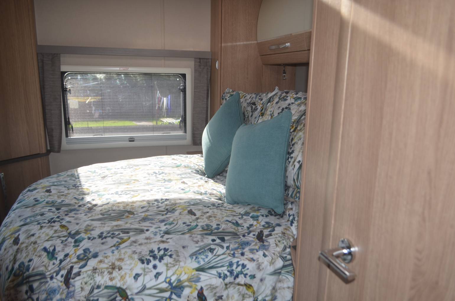 Fixed island bed at the rear with wardrobe space in the surrounding area.