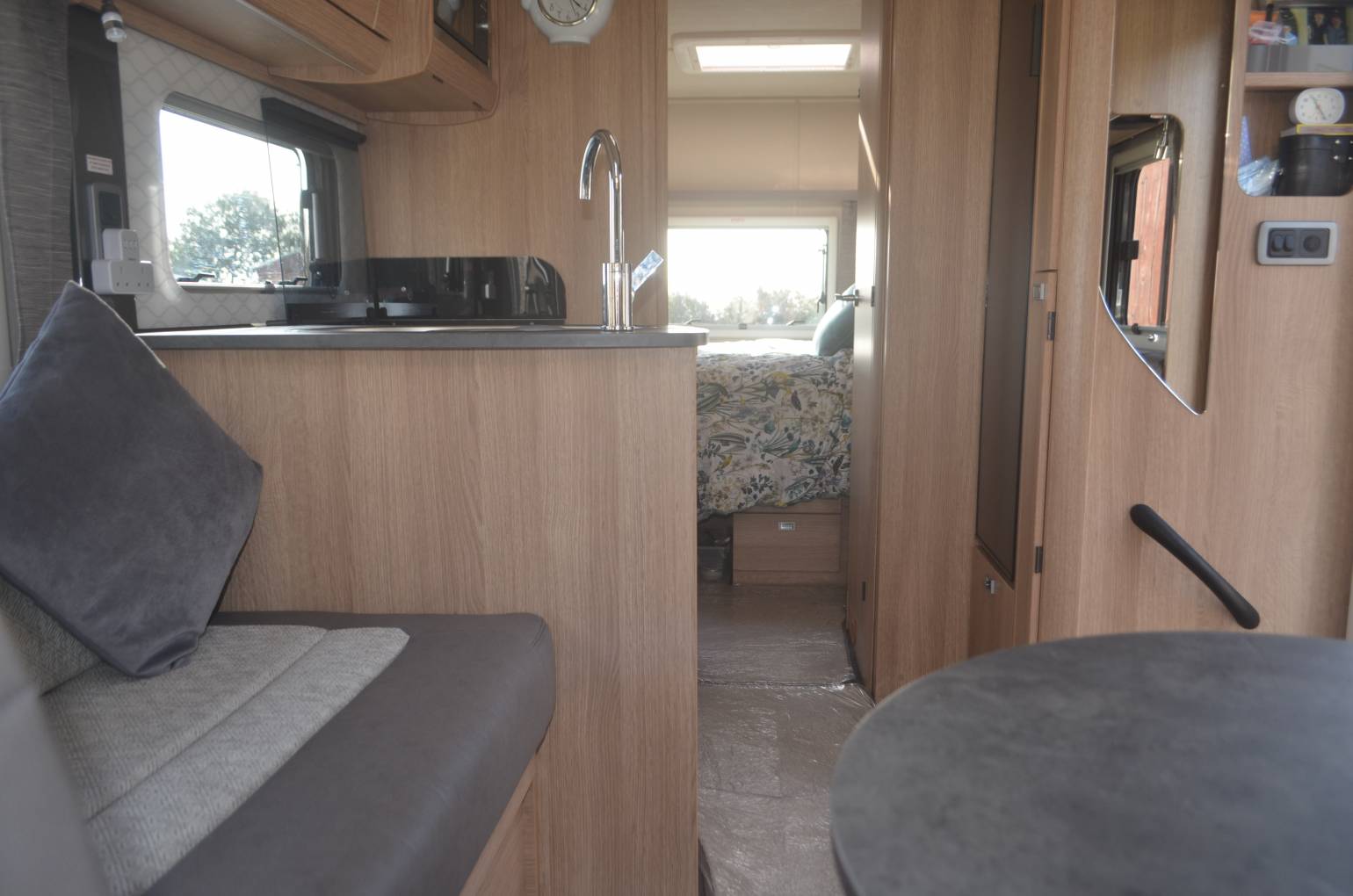 There is a privacy door to separate the lounge and the bedroom. Lounge area converts into another double bed and you have a stowaway table for dining.