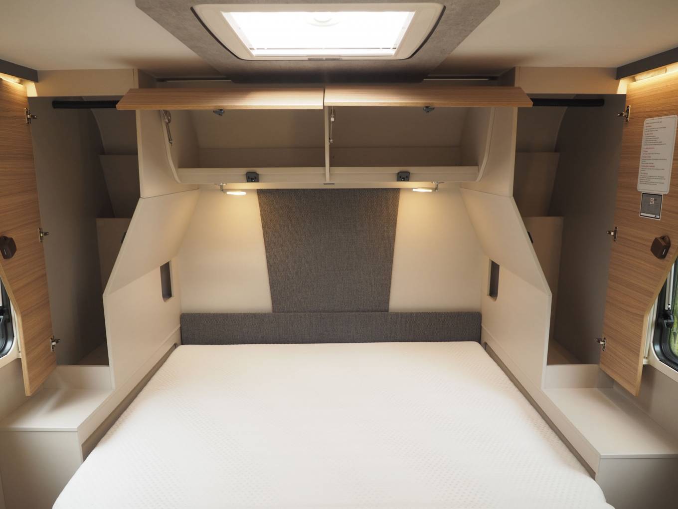the motorhome features a rear King-size island bed (DBL), providing a fixed,