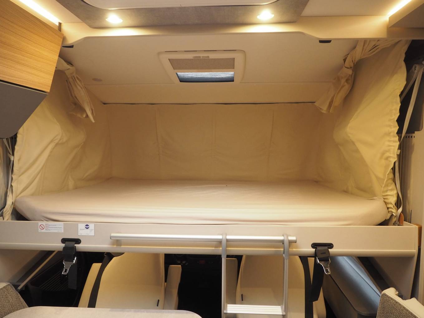 and above the cab is a large pull-down Queen-size double bed. The lounge/dining
