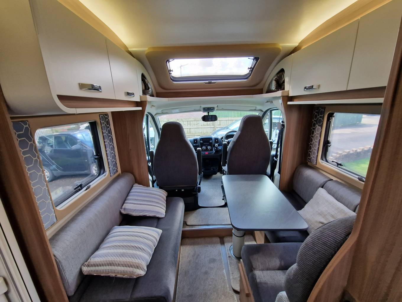 Extra Features - Cruise Control, Air Con, Reversing Camera, DAB radio, Blue tooth, Category 1 Sigma Alarm, Swift Command Tracker, USB points, Cup Holders, Tablet Holder, Fitted Reimo Screen Blinds, Side Thermal Blinds,Uprated Aerial Amplifier, USB points, full set of unused Carpets, Wind-Out Canopy, External Aerial, BBQ, Hot and Cold Shower Points.