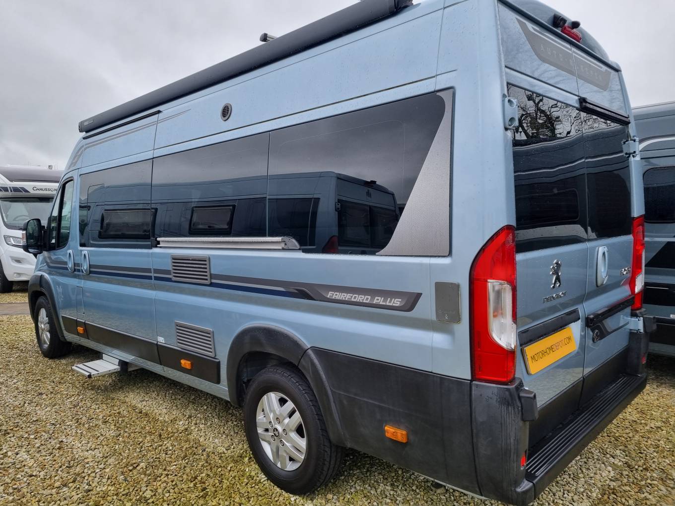 **viewing by appointment only** 2021 Auto-Sleepers Fairford Plus 4 berth camper for sale. Presented in beautiful condition with a huge specification and full service history. This model offers a rear transverse bed which can be folded down to create additional storage space and a front dinette area which transforms into sleeping places for 2 persons. A central kitchen area is fully equipped with sink, hob, oven, grill, microwave, fridge, extractor unit and plenty of storage space. Other features include Peugeot Boxer 3500kg chassis with a 2.2L 165hp engine, Azzuro Blue coachwork, 16" alloy wheels, Semi air suspension, refillable Gas It system, solar panel, awning, WIFI install, DAB radio, cab air con, cruise control, Sat Nav, cab shades, tracker install, electric step, external BBQ point, external shower point, external 240v socket, reverse camera, TV aerial, bike rack, Sagrada blue upholstery, Led lighting, on board water tank, heating and hot water system. This is a UK registered vehicle and can be sold to anywhere within the UK. Finance and part exchange available. Please call for further details.