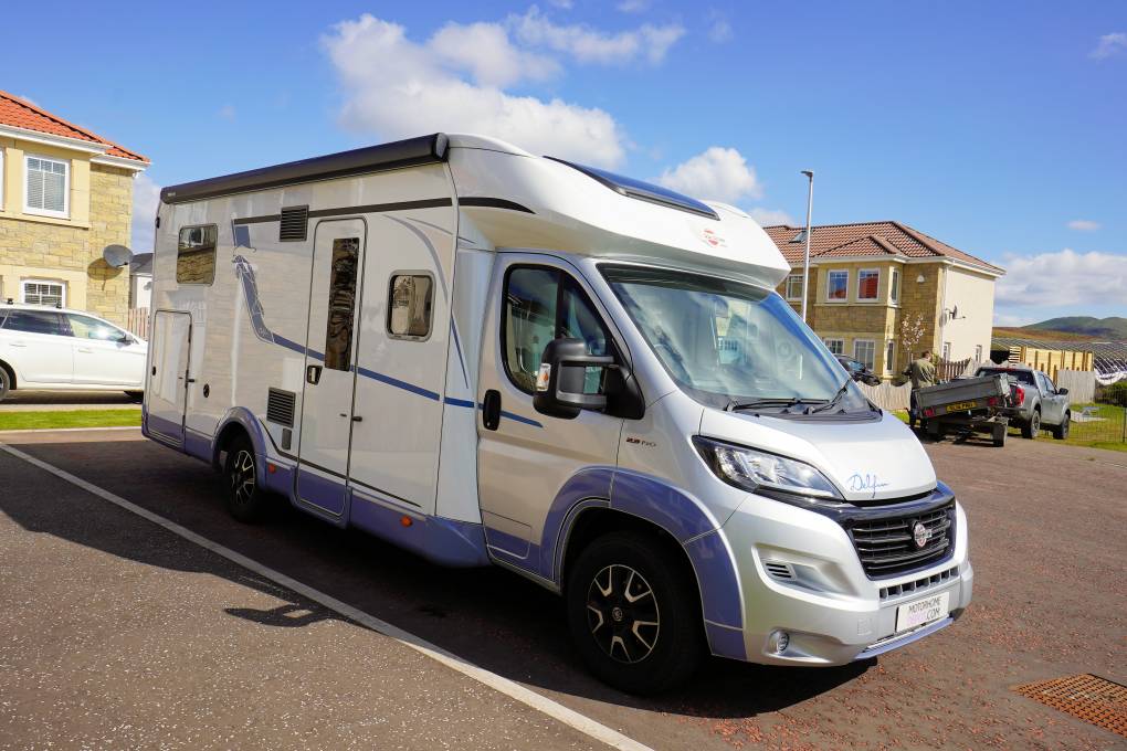 For sale we have a 2021 Burstner Delfin T727 G, 6-berth, 4-seatbelts, end fixed bed (singles/double), electric, drop-down bed, low-profile motorhome.