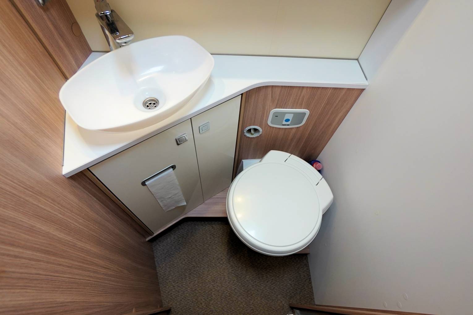 • Washroom with Thetford cassette toilet with electric flush and hand basin
