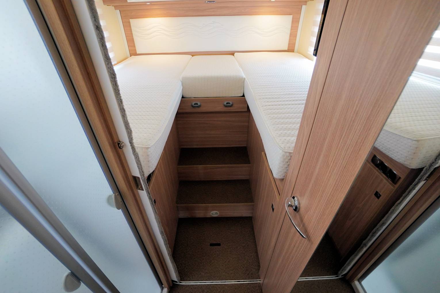 • Rear fixed single beds (with infill cushions, coverts to a large king size double)