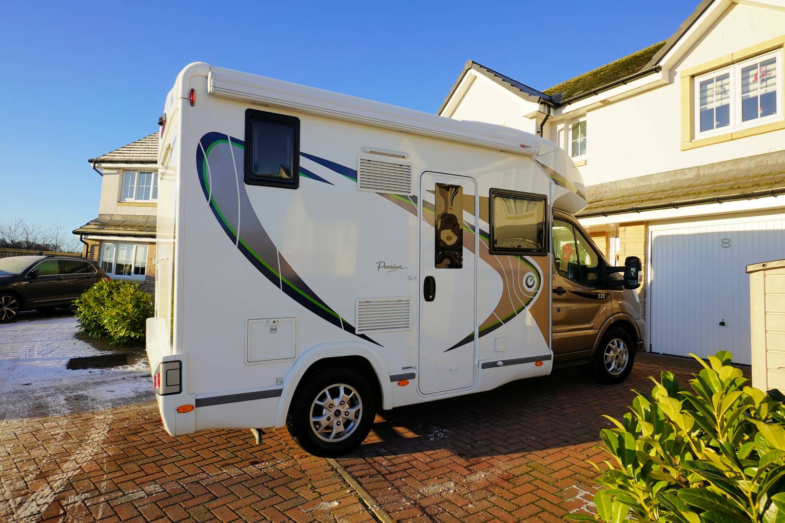 For sale we have this fantastic 2021 Chausson 520 Premium motorhome with 4-berths, 4-seatbelts, drop-down electric double bed, end-washroom, all fitted into a motorhome less than 6.0m in length.