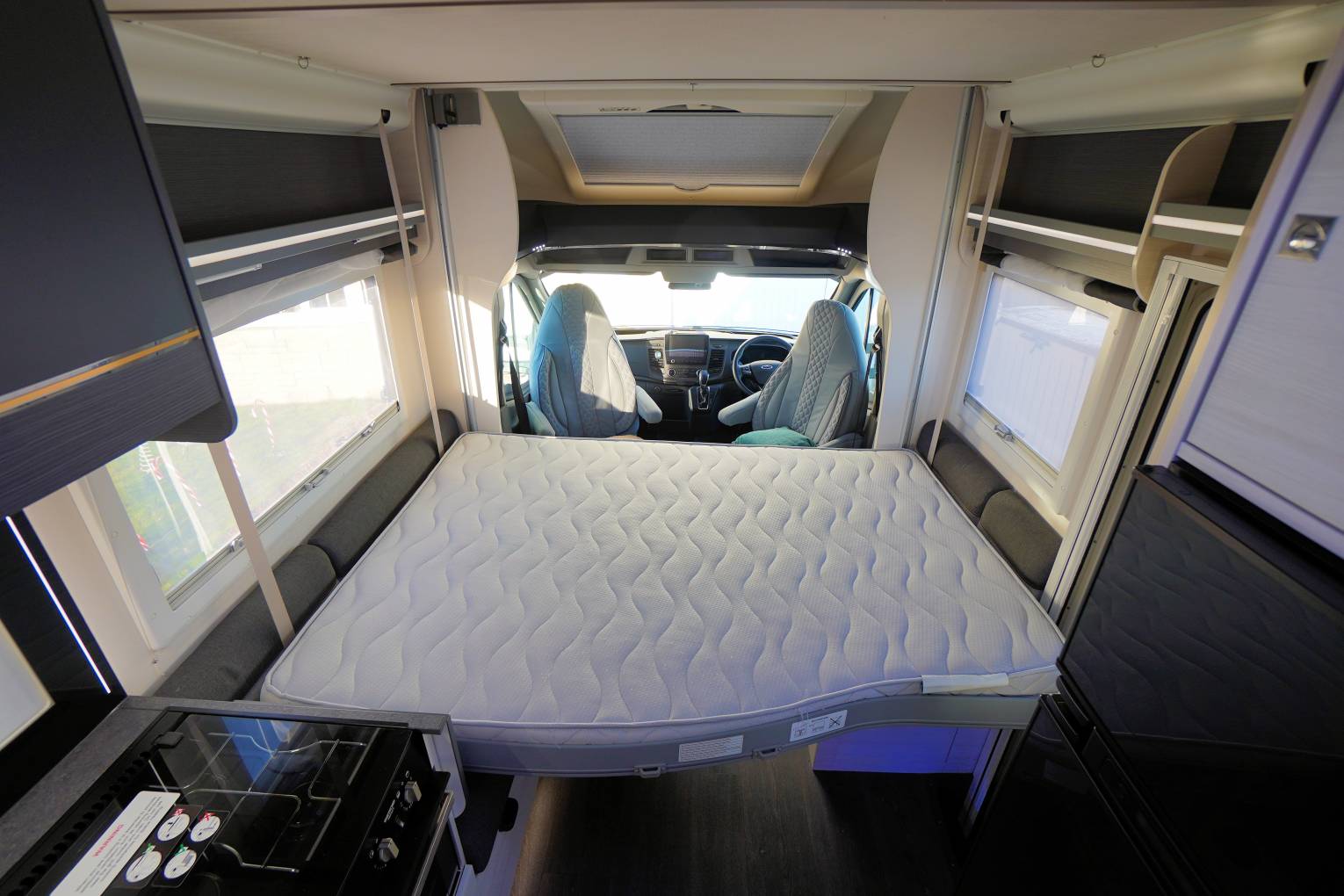 • Electric drop-down double bed. It can be lowered low enough to allow access to the bed without the need for a ladder or left higher to allow the bottom double bed to be made up.