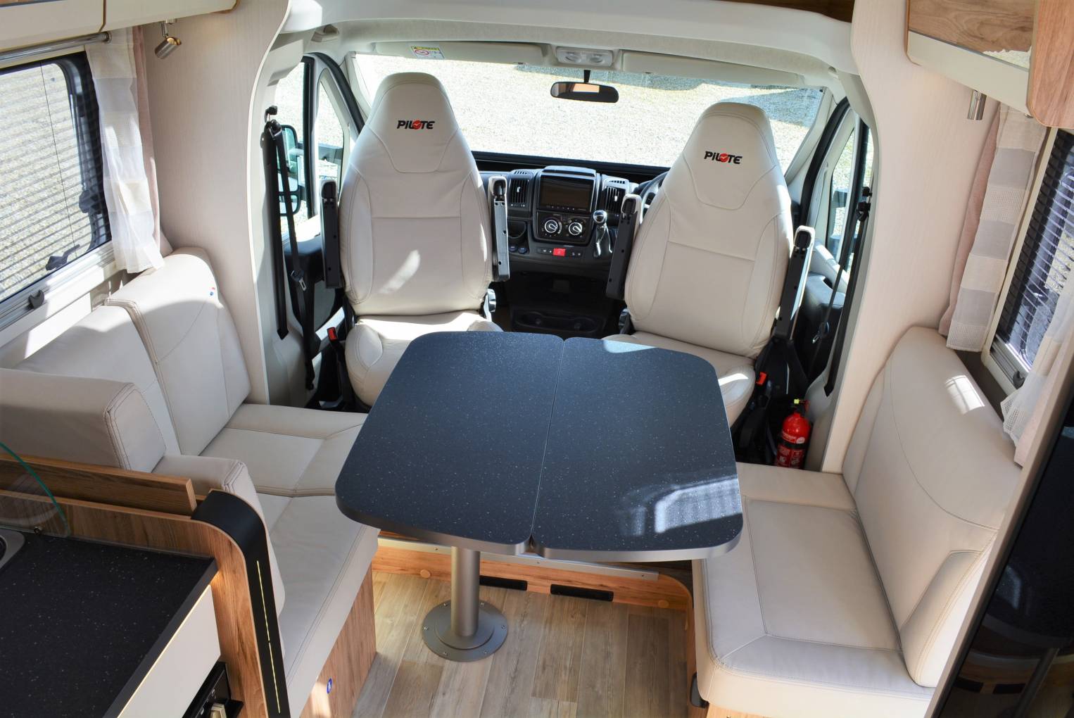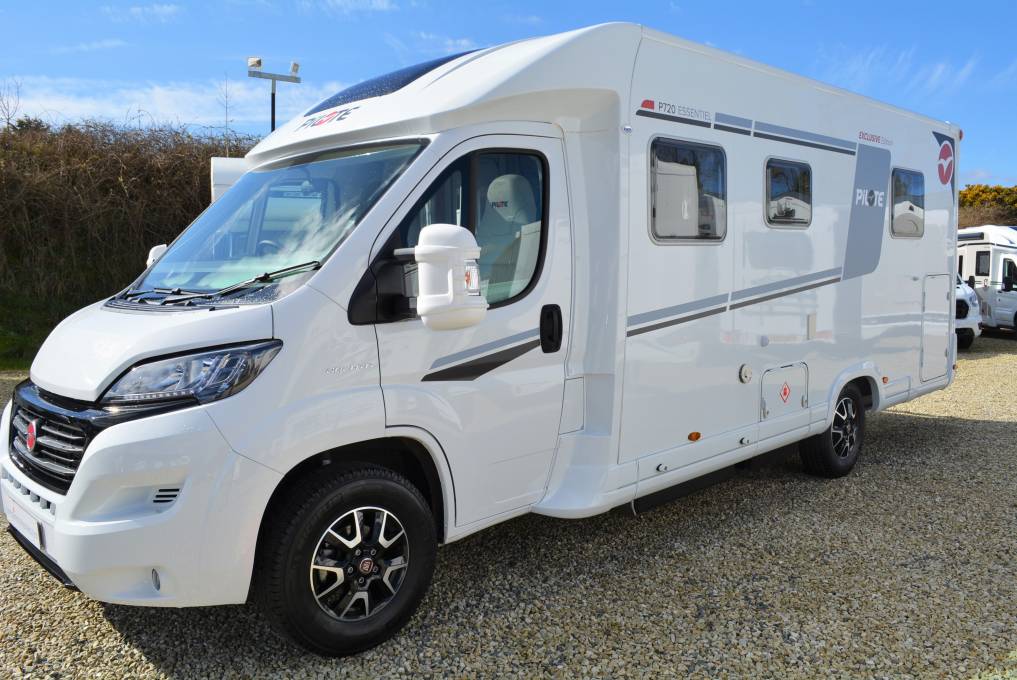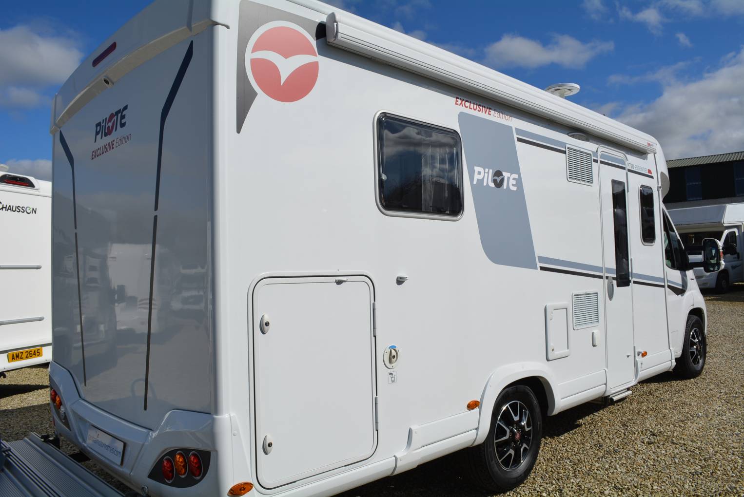 **viewing by appointment only** 2021 Pilote P720 Essential Automatic 2 berth low profile motorhome for sale. Presented in beautiful condition with just 4000 miles traveled and a level of specification that provides both comfort and style. This layout provides spacious living and sleeping quarters for 2 persons with a fixed island bed to the rear, ensuite toilet and shower and a large garage accessed from outside. A well equipped kitchen has hob, oven & grill, large fridge freezer and microwave. A spacious front lounge area has twin swivel chairs, 2 additional travel seats, panoramic sunroof and adjustable table. Other specification includes Fiat Ducato 3500kg chassis with upgraded 140hp engine, automatic transmission, alloy wheels, colour coded cab, awning, aerial, solar panel, reverse camera, air suspension, cab air con, cab shades, electric step, exterior gas point, exterior belly locker and mirror covers. (A scooter rack is available to purchase at additional cost) Sale includes full years warranty with all servicing up to date. Finance and part exchange available. Please call for further details.