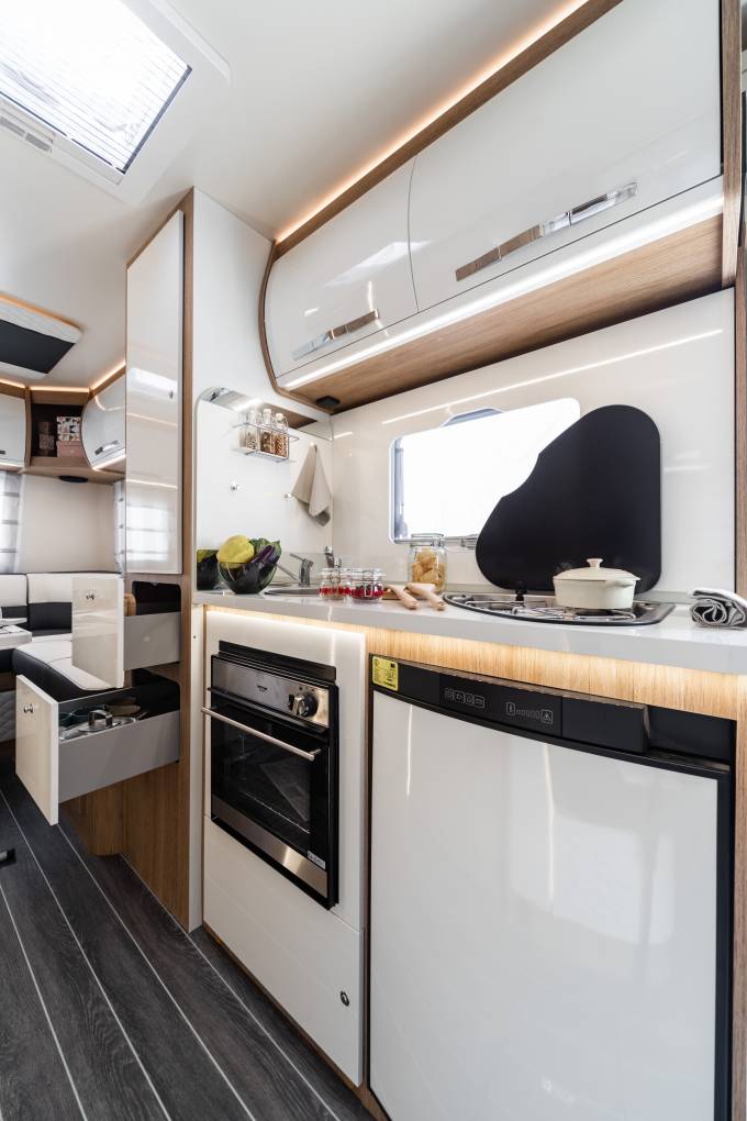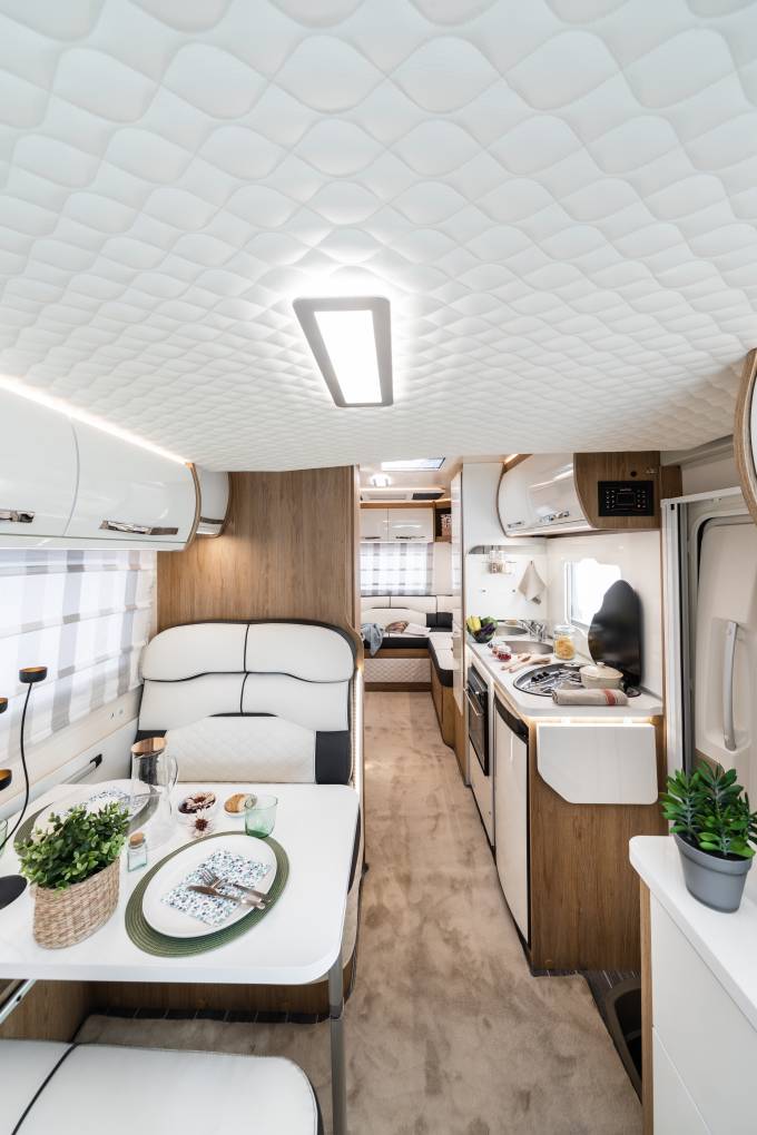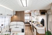 Family living has clearly been the focal point of design in the Auto-Roller 747. An attractive rear U-shaped lounge dressed in Marta soft furnishings provides a stage for which relaxing, entertaining and game nights are welcomed. Enhancing this area further, the addition of speakers for 2021 is great for both entertaining and relaxing. Whilst upfront the double dinette with mounted table directly next to the kitchen is perfect for keeping the chef company whilst they cook up a storm in the well-equipped and surprisingly expansive kitchen. Comfort is carried through to night-time with a spacious drop down double over the dining area and two doubles being made up in the two seating areas.OREDR NOW FOR 2021 DELIVERY