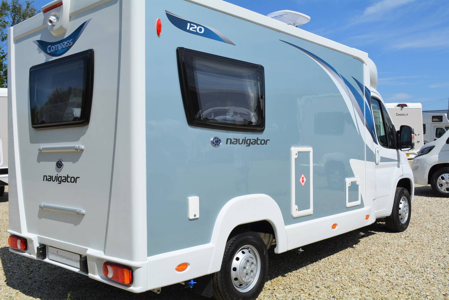 **viewing by appointment** 2022 Compass Navigator 120 low profile motorhome for sale. This 2021 model is presented in beautiful condition having traveled just over 600 miles. The Navigator model is finished with a colour coded cab and striking Azure Blue side walls with a narrow body and measures just 5.9m in length. The chosen base vehicle is a Peugeot Boxer 2.2 140 HDI engine with a manual transmission and max weight of 3300kg which means a standard car license is all that is required to drive this Motorhome. Other features include rear lounge area, mid ship kitchen with full cooker, microwave, heating and hot water, toilet facility with shower, cab shades, cab air conditioning, cruise control, Peugeot DAB radio, reverse camera, aerial, TV bracket, external gas point, hook up cable and much more. Finance and part exchange available. Please call for more details....