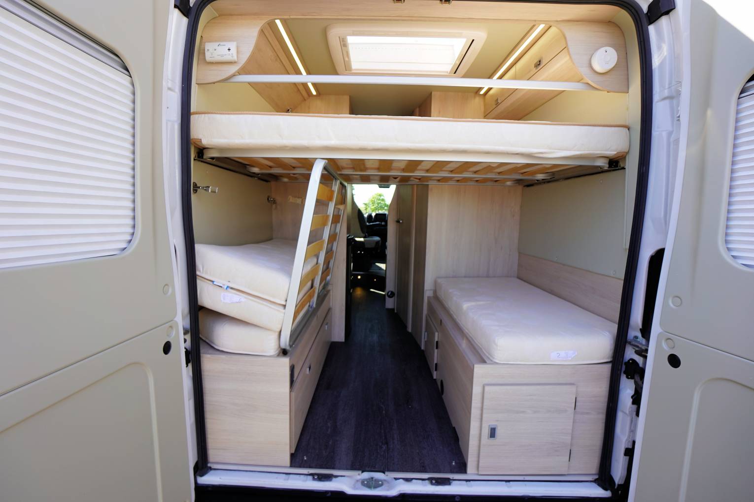 • Rear double bunk beds (the top bunk can be removed if not required)