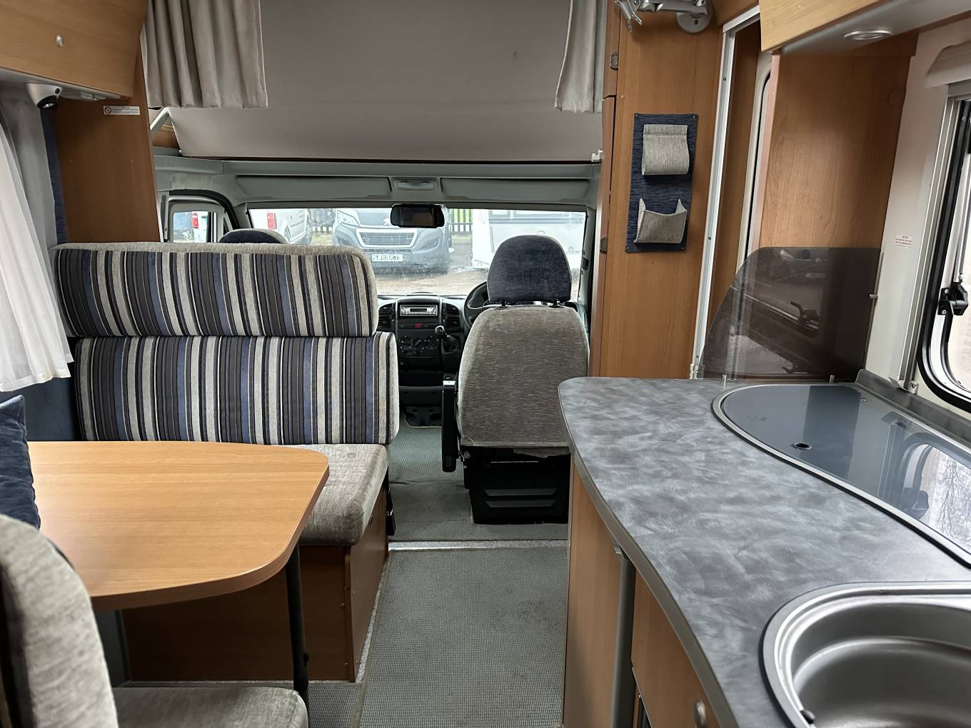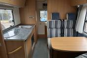 To the front of this Tardis-like Motorhome is the Transformable Living/Dining Area Revel in the flexibility of the double dinette area that doubles as a cosy bed or a snug retreat, by night, witness it transform effortlessly into a second double bed . You have a Galley Kitchen with 3-Burner Gas Hob, Oven & 3-Way Fridge: There is plenty of storage to keep your ingredients fresh and kitchen essentials organised.