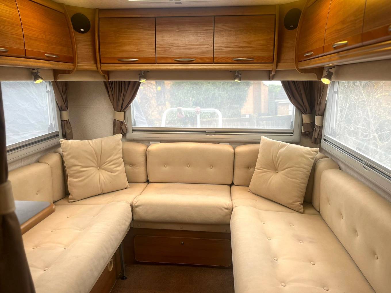 large, U shaped rear lounge. The sofas have been reupholstered in a lovely cream suede and can be converted into one