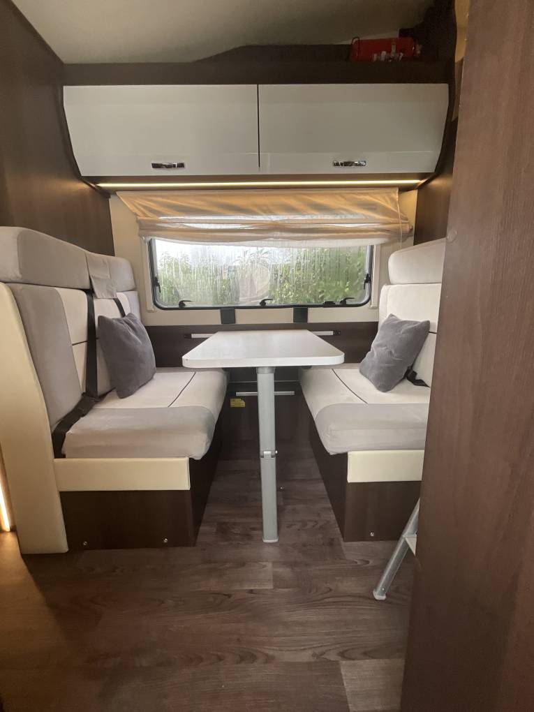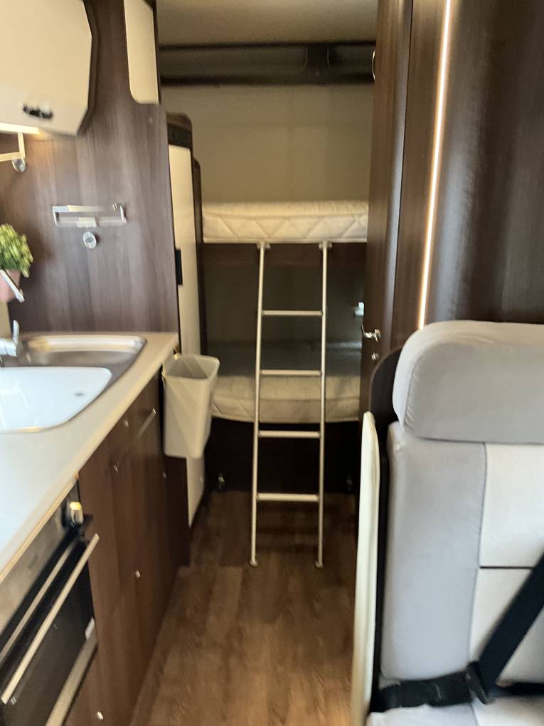 This 2016 Roller Team Zefiro 675 is the perfect young family motorhome which can take you on your adventures and to make memories. This is a 6 berth, 6 belt, rear garage family vehicle. Its well-appointed kitchen has a 3-ring gas hob, oven with grill, sink, fridge/freezer and storage washroom and separate shower.6 can people sleep comfortably using the over cab double bed, central double bed (which is converted from the lounge seating) and 2 rear bunks (the bottom which folds up to form part of the garage space when travelling, meaning you can easily stow away chairs, BBQ's or bikes)