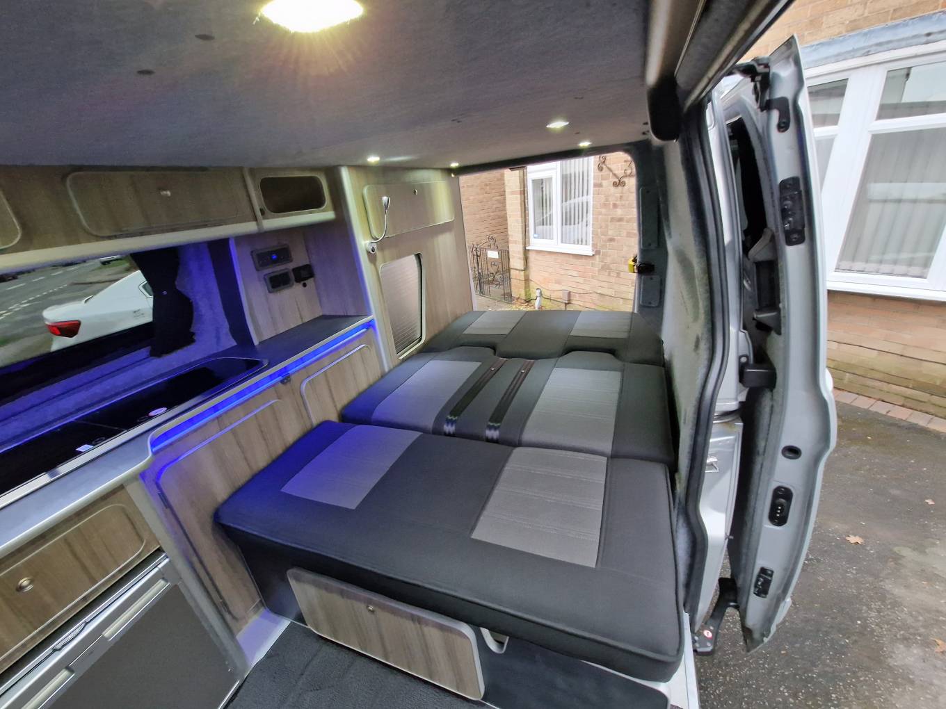 This Conversion can sleep up to 2 people whilst you are able to travel up to 5 people. Some of the great features and extras are, A Drive Away Vango Awning including full electric hookup cables and awning connections to get you started, Diesel Heater, Rock n Roll Bed that can be put up in less than 10 seconds, Thetford Camping Toilet Including Privacy Tent, Cab Air Con, Front and Rear Parking Sensors, Bluetooth, Alloy Wheels, Electric Windows and Mirrors, USB Points, 2 Sets of Keys x2 to name a few.