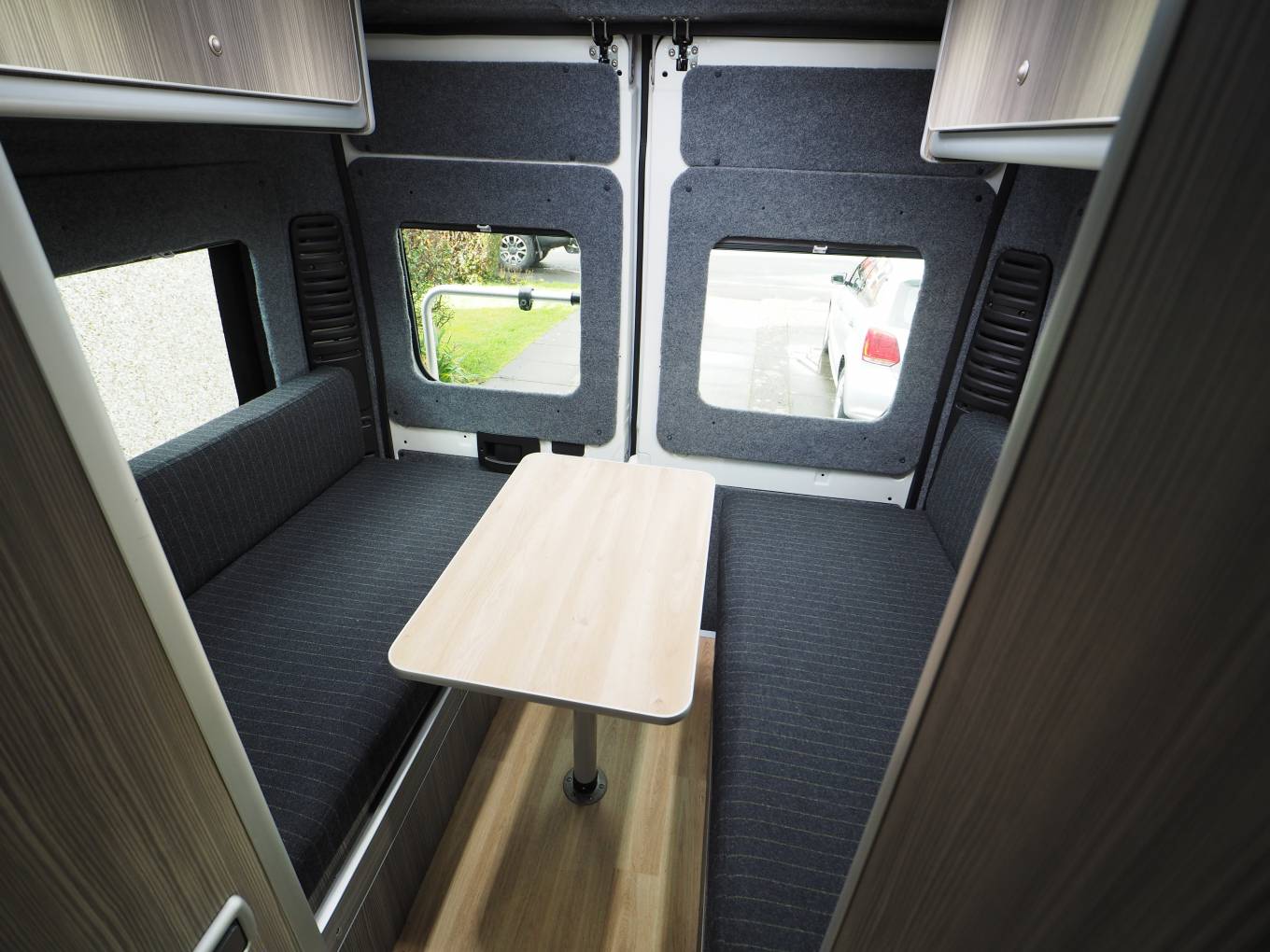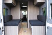 Up front, a small side sofa, and the swivelling front passenger chair, provides further seating options and a great place to sit with the wide sliding side door open to enjoy the view wherever you have chosen to park up perhaps with a glass of your favourite tipple in hand to watch the evening sunset.